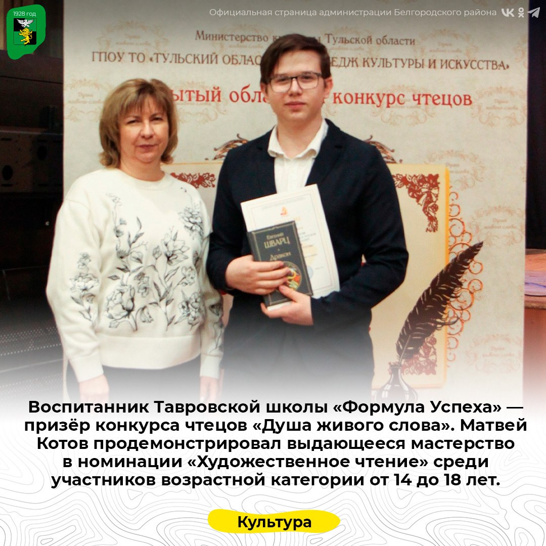 Воспитанник Тавровской школы «Формула Успеха» — призёр конкурса чтецов «Душа живого слова»
