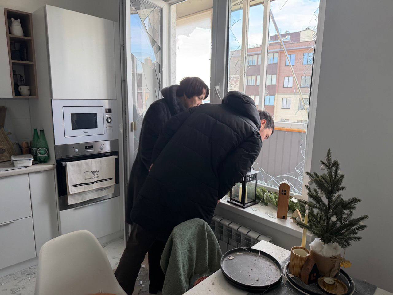Выбиты окна, повреждены фасады домов и другие элементы наружной отделки. Пока не удаётся попасть внутрь одной из квартир — не удалось связаться с хозяевами. Поквартирный обход продолжается. На месте работают оперативные и муниципальные службы, аварийные бригады.