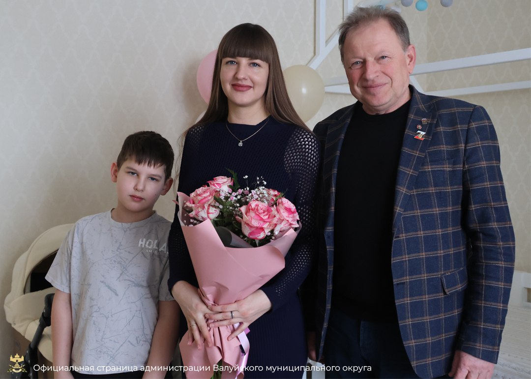 Сегодня глава муниципалитета Алексей Дыбов поздравил счастливых родителей и вручил им подарки –коляску и игрушки.