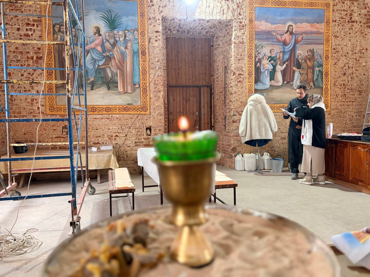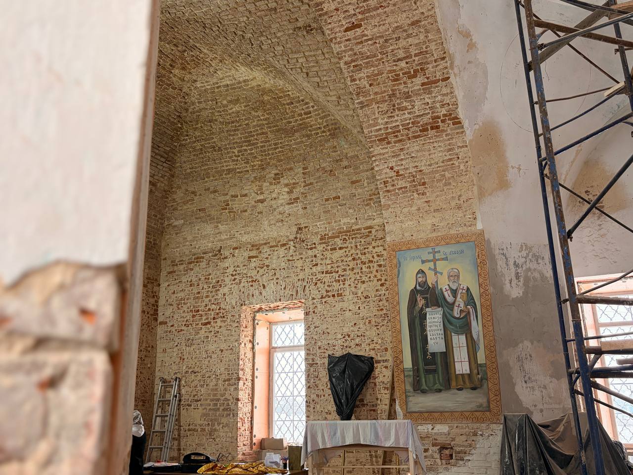 Работы сегодня идут полным ходом. Восстановлены разрушенные стены как снаружи, так и внутри. Проведено отопление — теперь внутренняя отделка не зависит от капризов погоды. Мастера уже приступили к оштукатуриванию стен. И особенно отрадно, что рядом с профессионалами трудятся обычные люди — наши жители. Одни помогают выносить строительный мусор, другие провели в храм воду и свет, третьи сегодня мастерят мебель для будущих прихожан. Каждый вносит свою лепту, и из этих малых дел складывается великое возрождение.