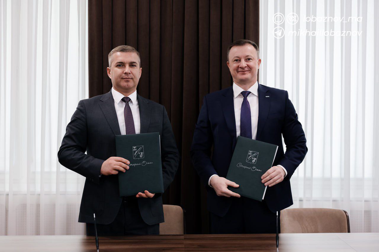 Подписали программу мероприятий на 2026 год в рамках трёхстороннего соглашения о социально-экономическом сотрудничестве с Денисом Дмитриевичем Доценко — директором Оскольского филиала компании «ЦЕМРОС».
