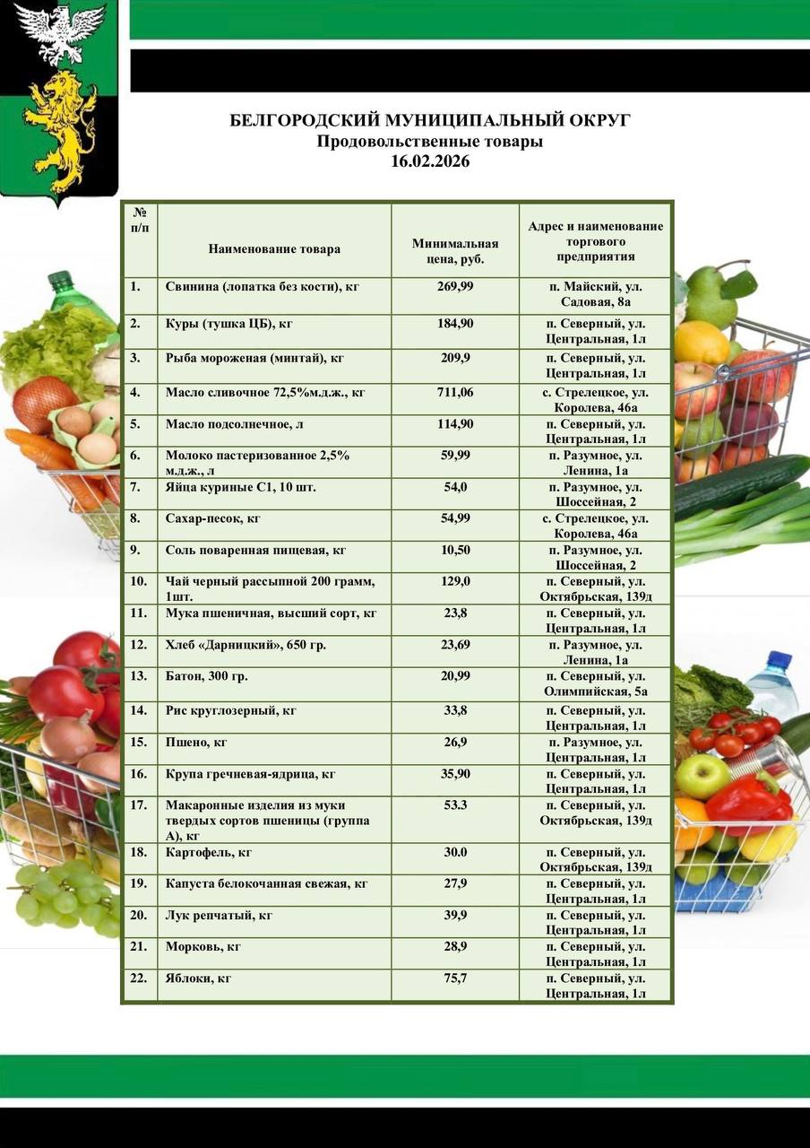 Публикую цены на социально значимые продукты питания