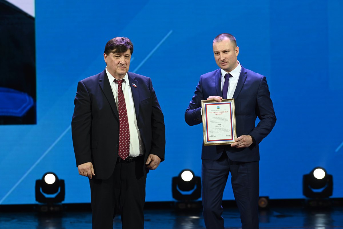 Благодарность исполняющему обязанности директора филиала Кириллу Юткину вручил председатель Белгородской областной Думы Юрий Клепиков.