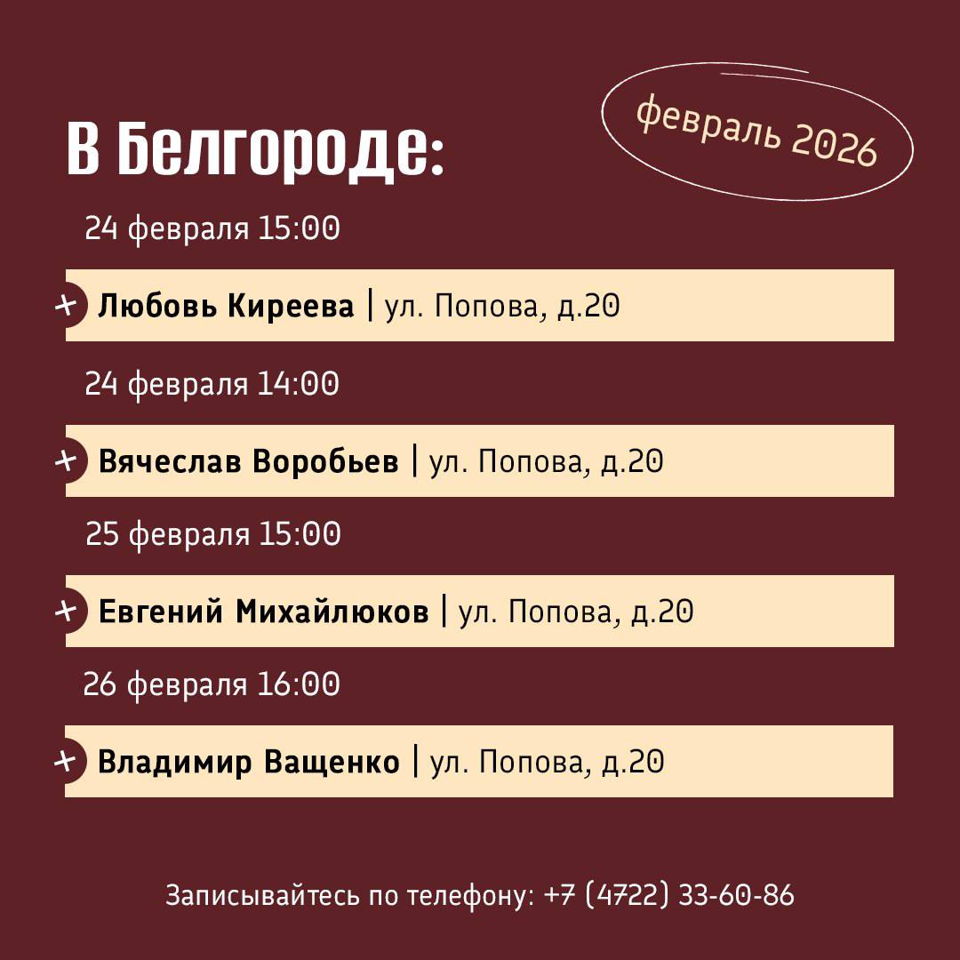Чтобы записаться, звоните по номеру: +7(4722) 33-60-86