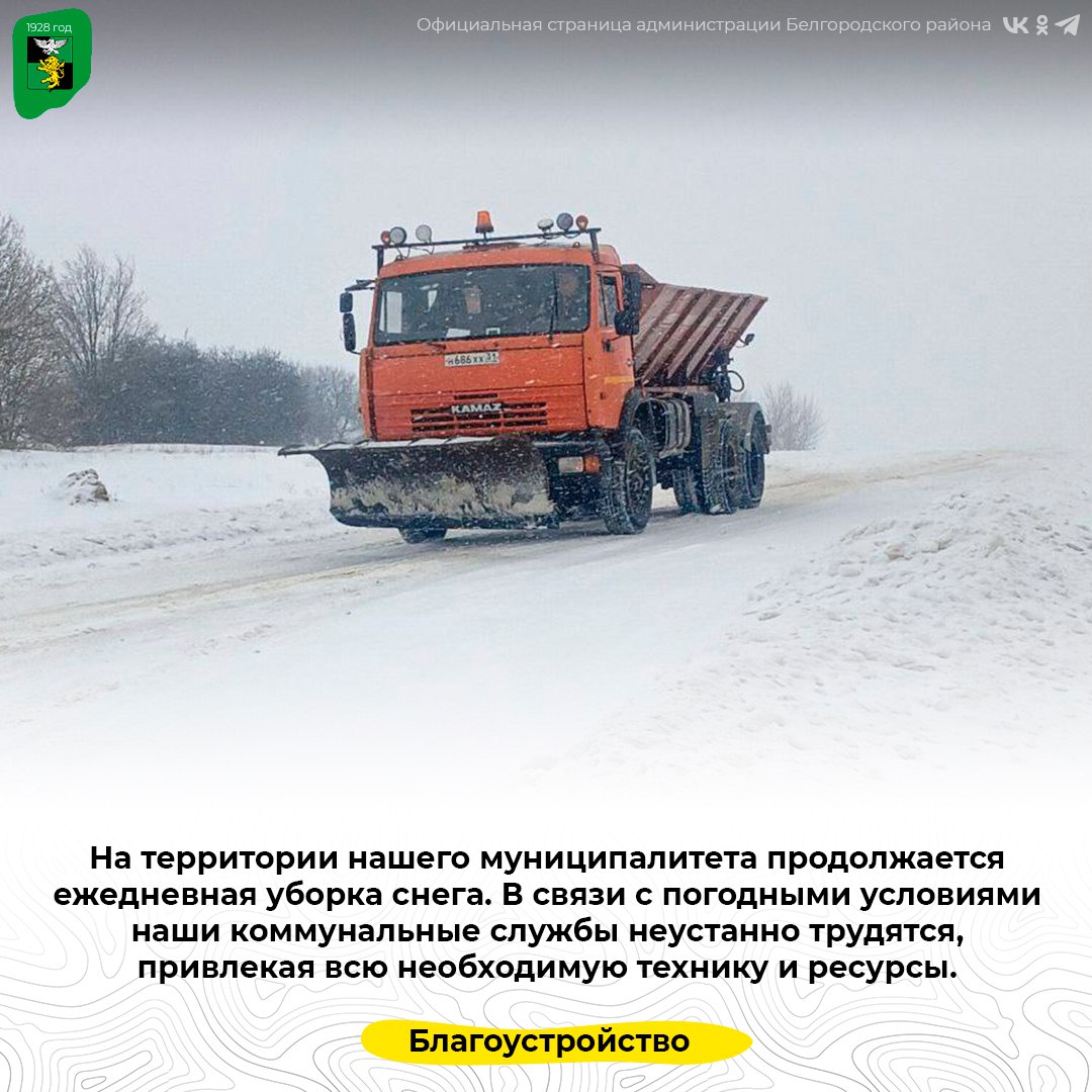 В связи с погодными условиями наши коммунальные службы неустанно трудятся, привлекая всю необходимую технику и ресурсы. В работе задействованы снегоуборочные машины, тракторы, погрузчики, а также специальные ручные бригады.