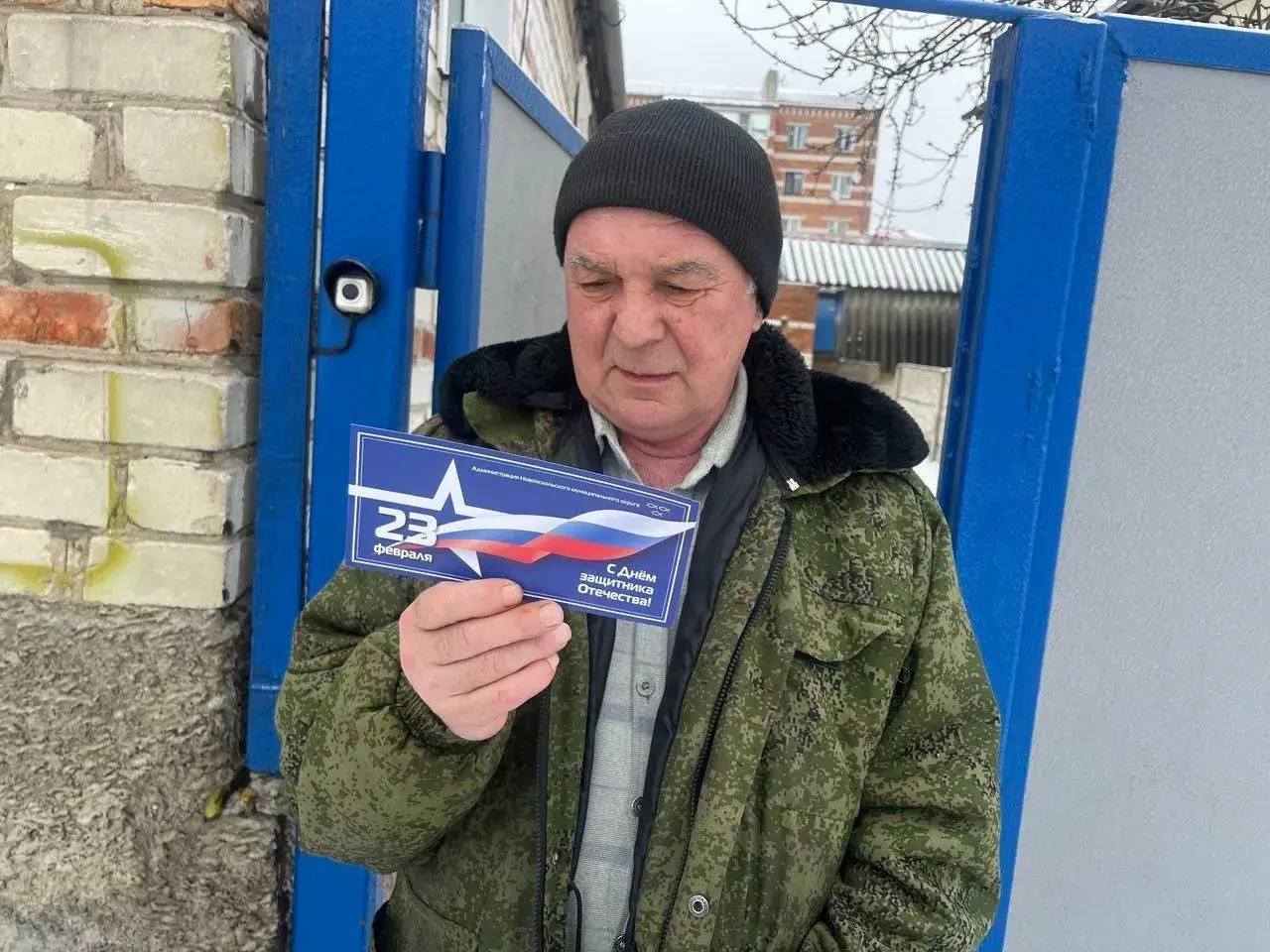 В честь всенародного праздника поздравительные открытки получили мужчины старшего поколения, участники и ветераны боевых действий.