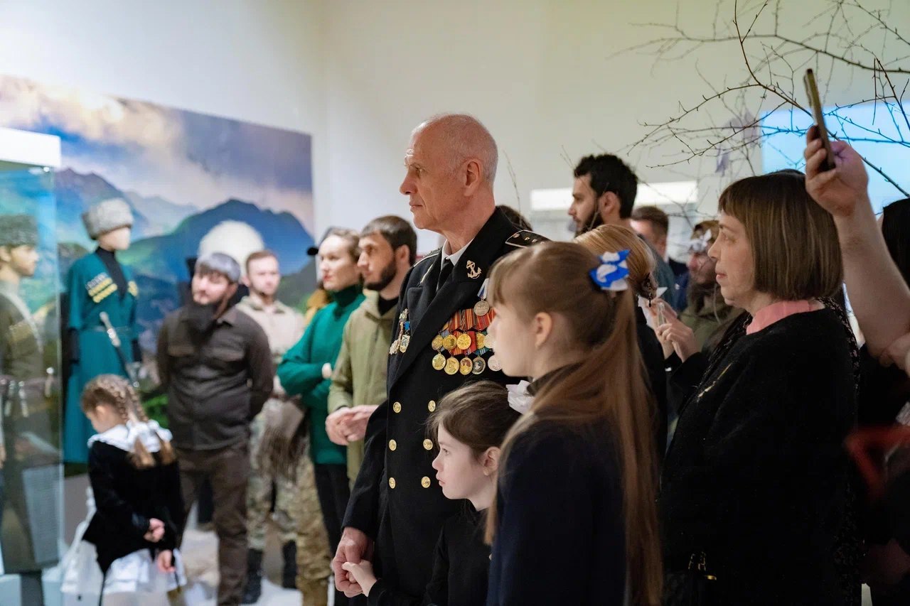 Проект «Вместе мы сила» позволил отразить богатое культурное многообразие народов: помимо личных предметов участников СВО, на выставке можно увидеть национальные мужские костюмы, предметы религиозного назначения и музыкальные инструменты из разных республик нашей страны.