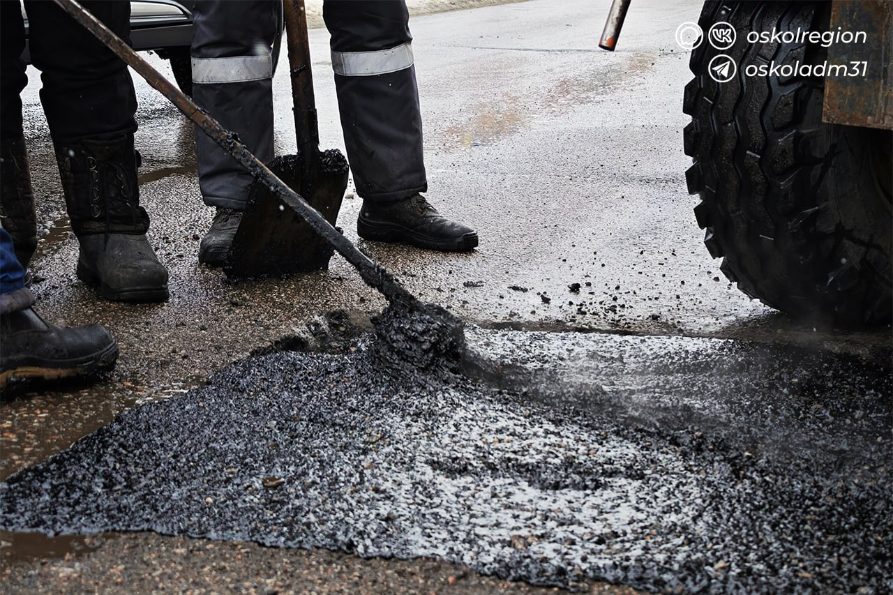 В нашем округе продолжается непогода, и дорожные службы занимаются ямочным ремонтом.