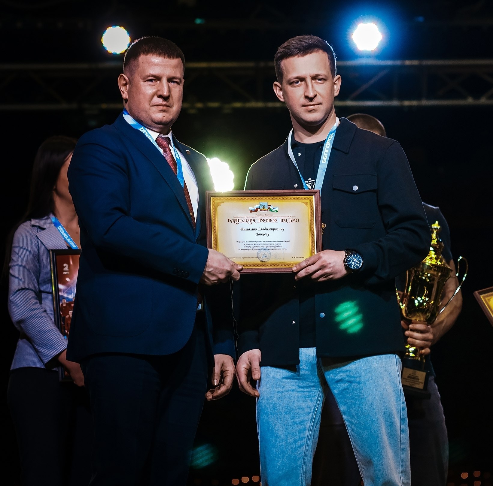 Участие в мероприятии принял глава муниципалитета Виталий Кутоманов, он с особой гордостью вручил Кубок победителя Второй лиги Краснояружскому ФК «Вымпел». По итогам минувшего года наши парни были удостоены высокого звания «Открытие года». Капитан команды Виктор Сафонов признан самым ценным игроком турнира, вратарь Дмитрий Маринов отстоял звание лучшего голкипера, а легионер Сергей Комиссаров заслуженно получил звание «Лучший ассистент».