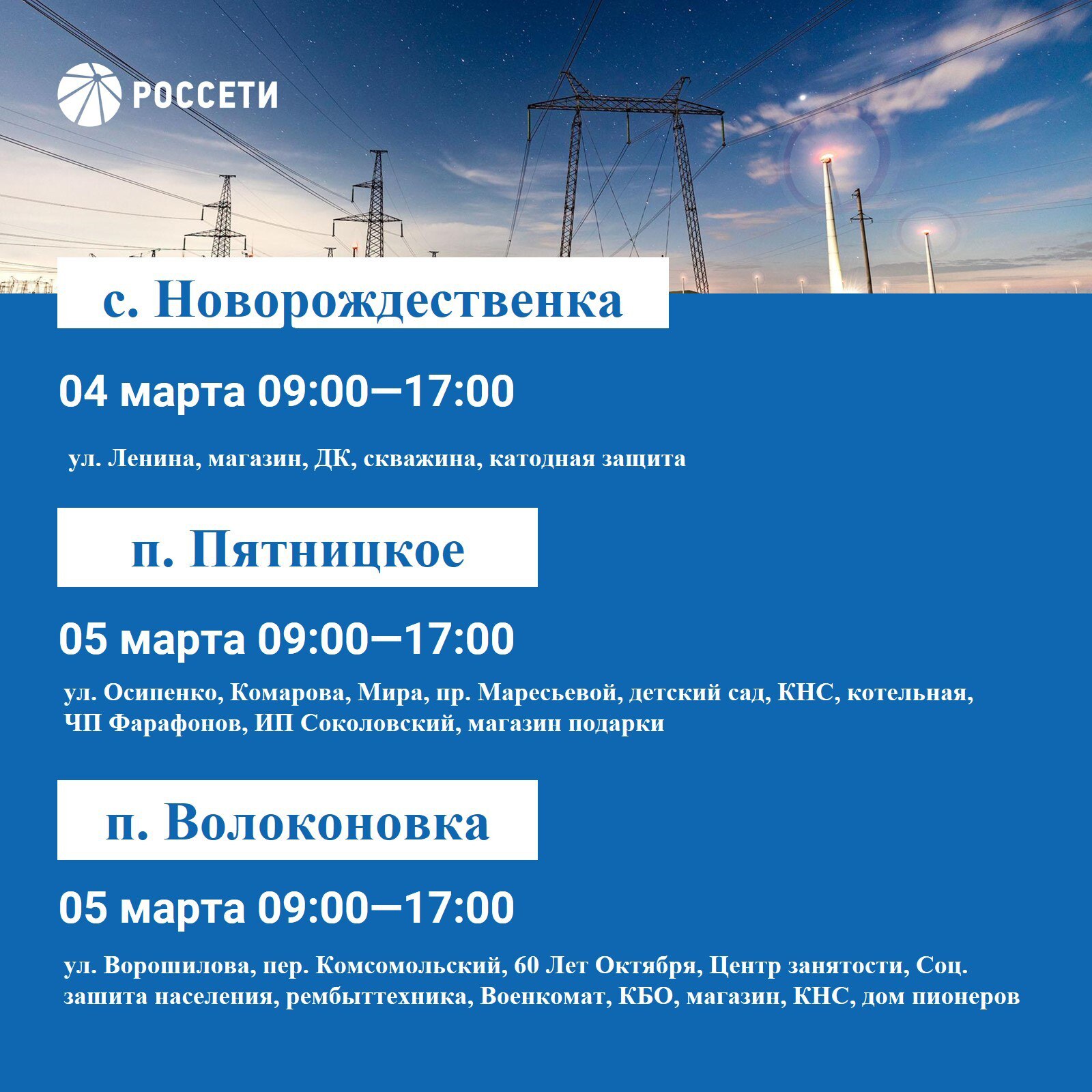 Волоконовский РЭС информирует о плане отключения электроэнергии с 02 по 08 марта 2026 года