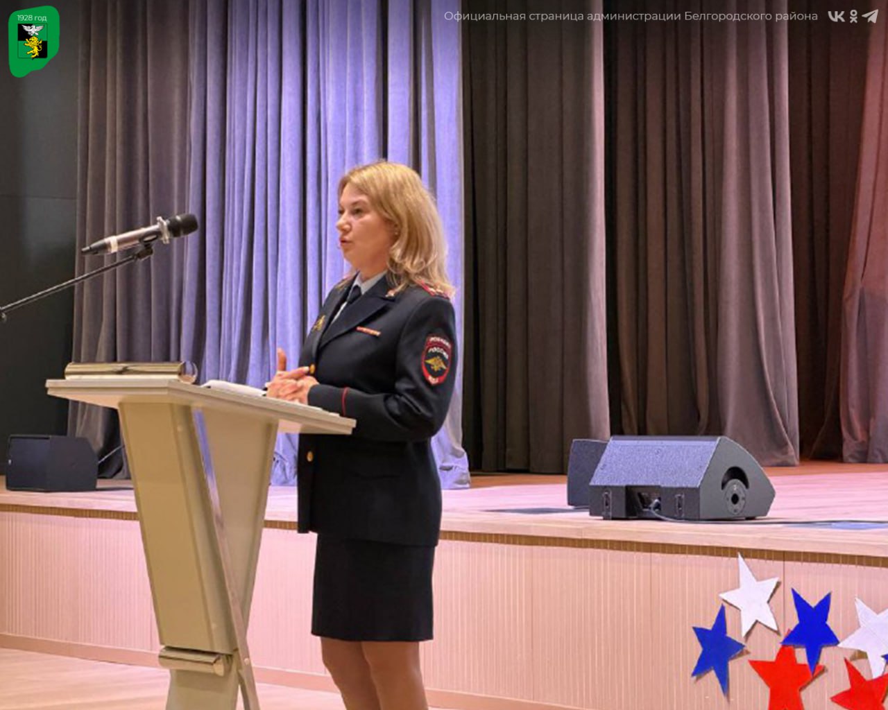Она была посвящена безопасности дорожного движения, где ученики и педагоги смогли пообщаться с майором полиции Денисом Оробинским, начальником ОГИБДД ОМВД по Белгородскому району, и подполковником Екатериной Тимошеней, начальником ОПДН того же подразделения.