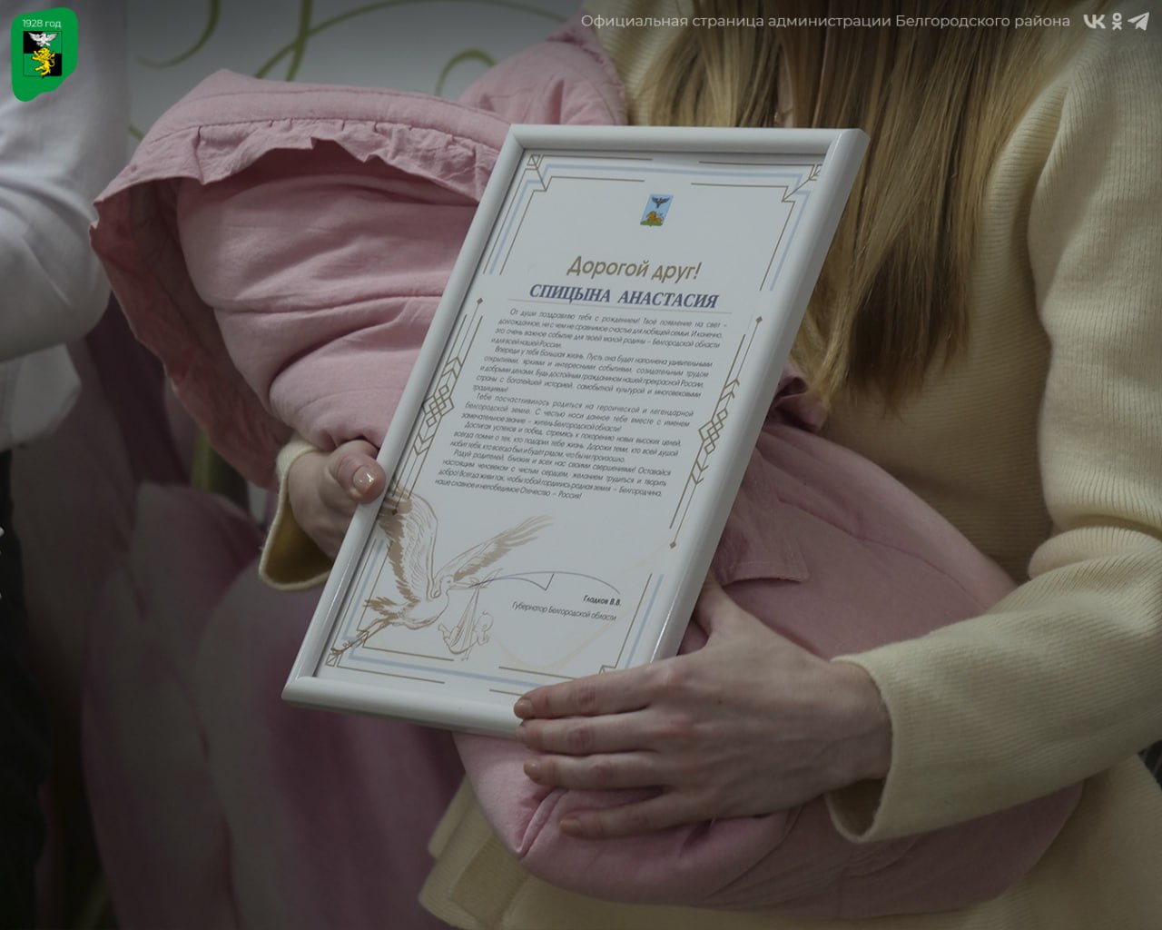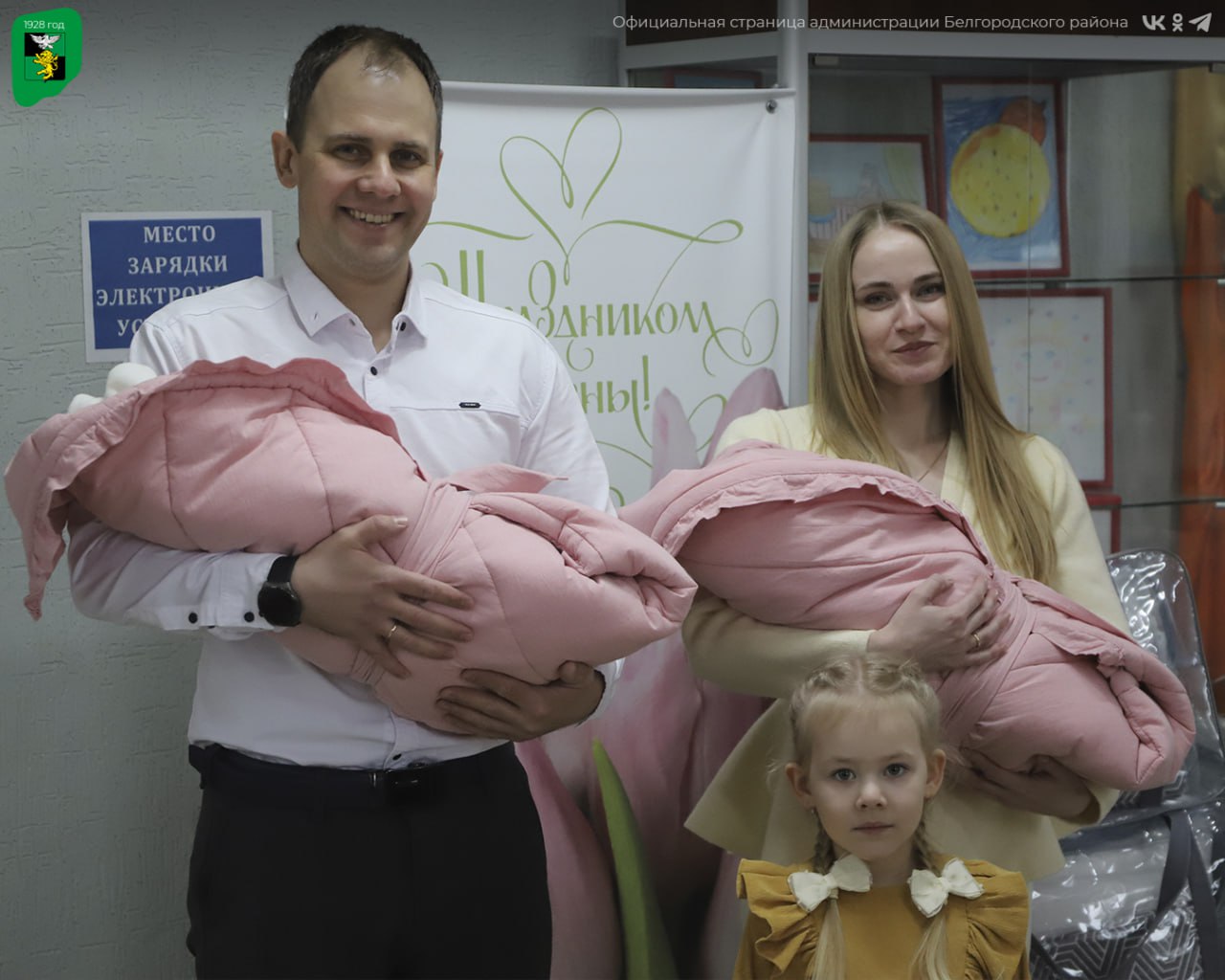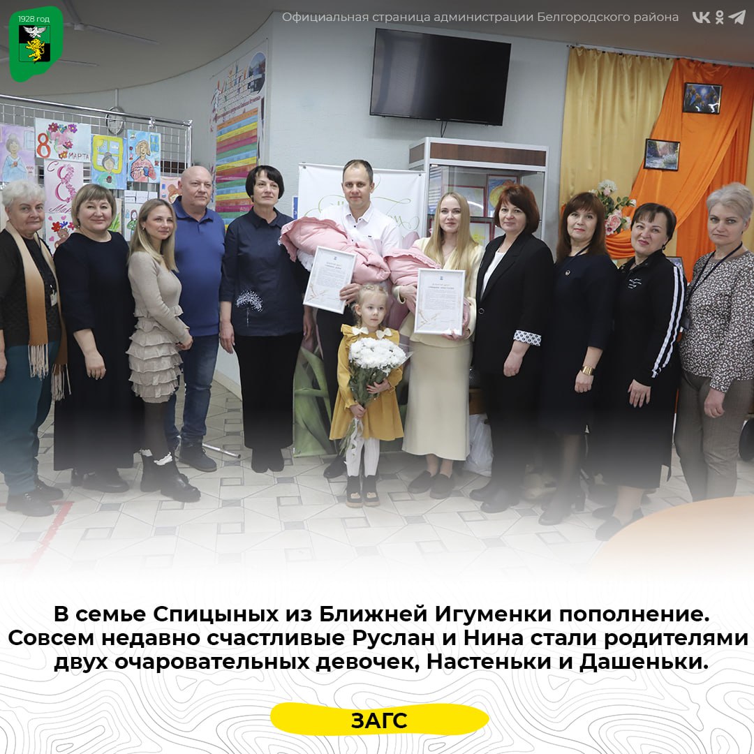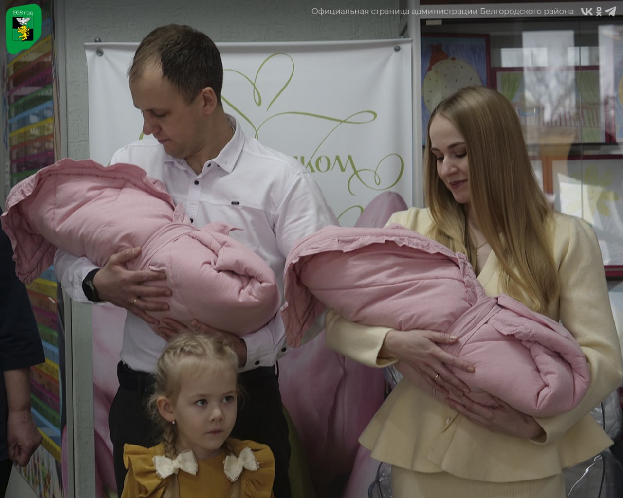 В рамках социальной поддержки, утверждённой в 2024 году, от администрации муниципалитета молодым родителям вручили подарки — удобную двухместную коляску и наборы с необходимыми вещами для первых месяцев жизни малышей. Кроме того, были вручены поздравительные адреса от губернатора Белгородской области Вячеслава Гладкова.