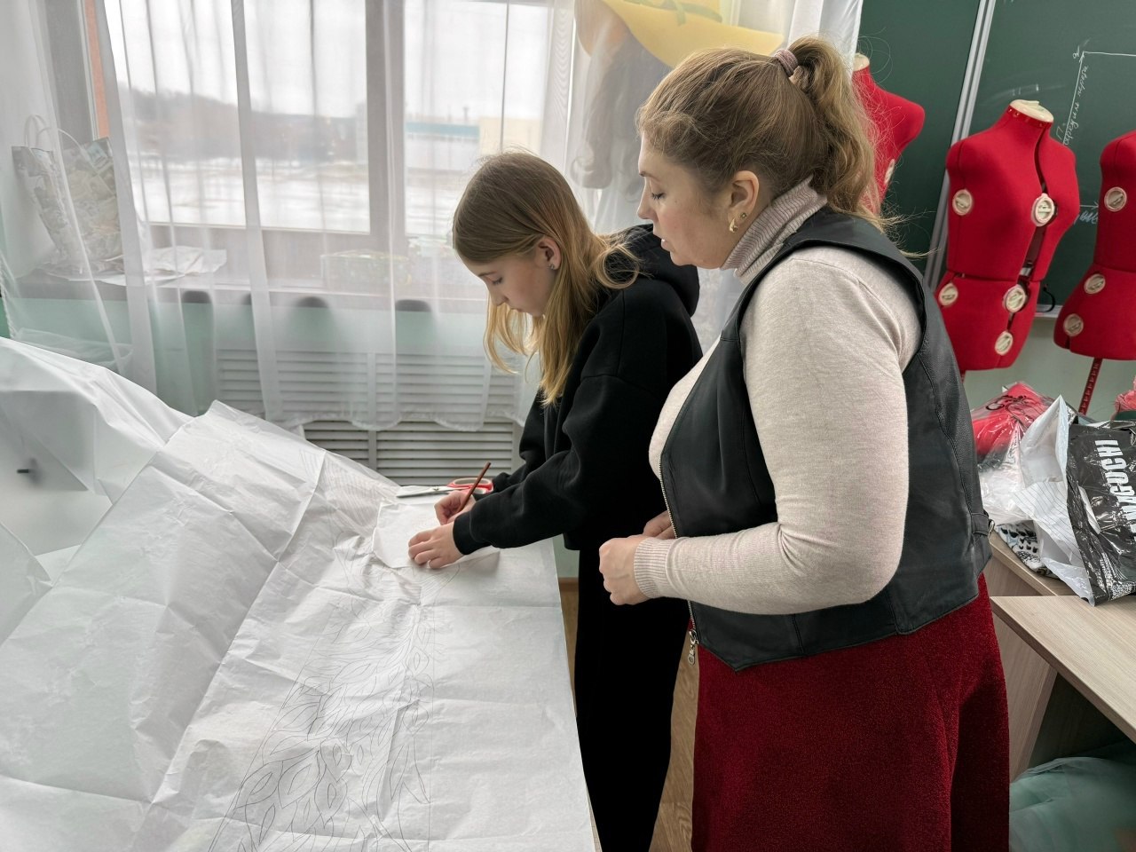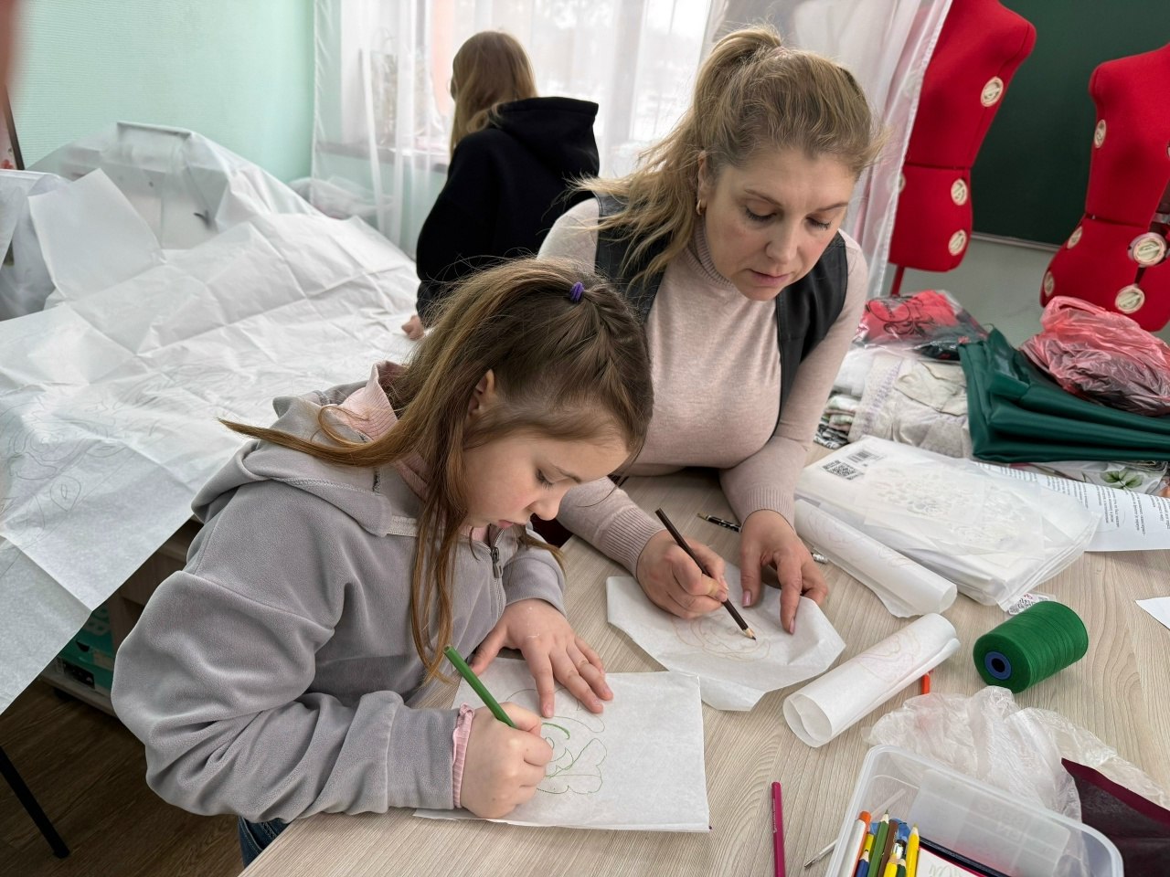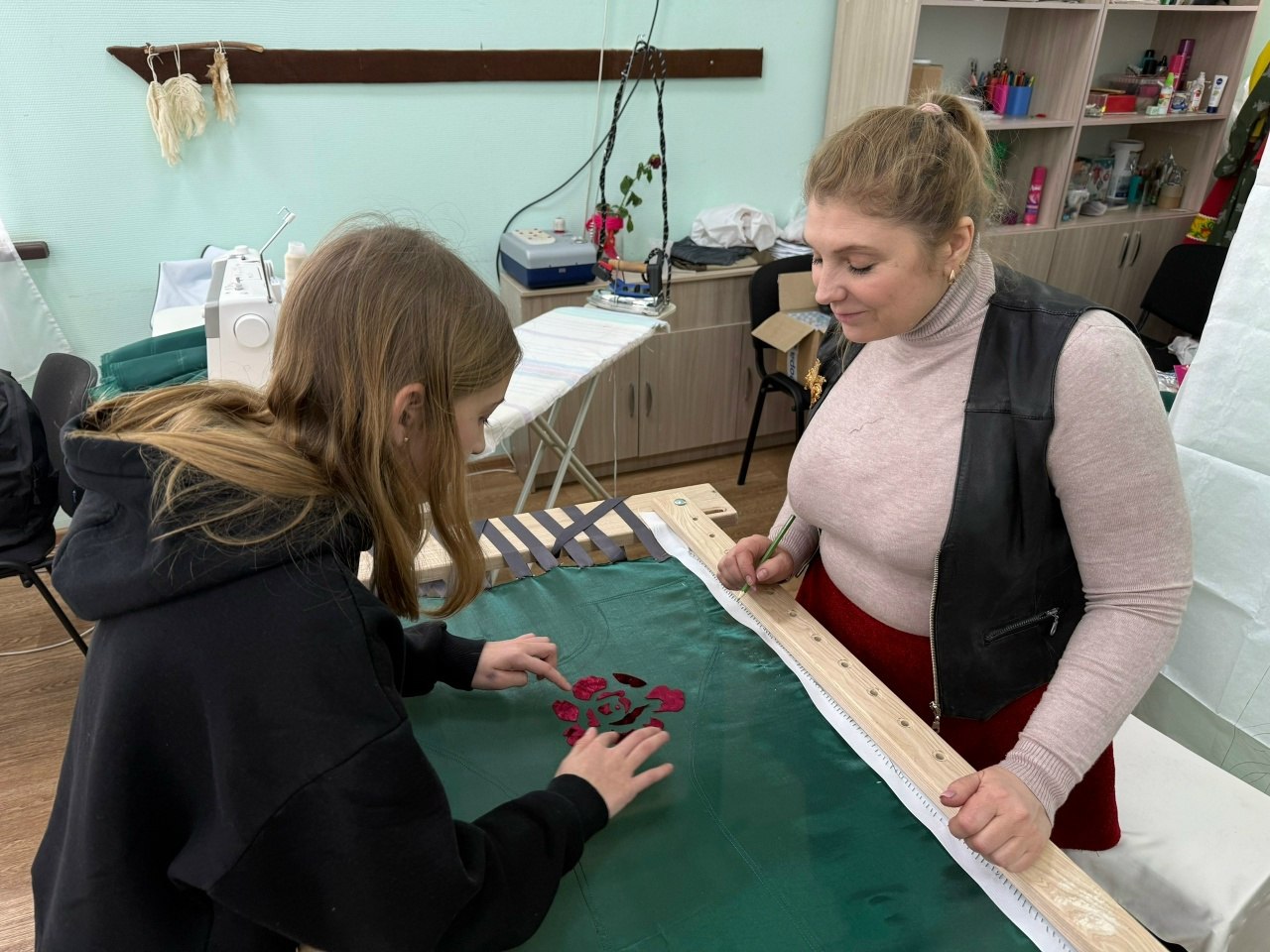 Под руководством Натальи Лубенской девушки освоили создание аппликаций ручной работы и изучили технологию выкладки рисунка на ткань. Они научились заправлять материал на большой станок для вышивки, созданный по индивидуальным чертежам и приобретённый на средства гранта Президентского фонда культурных инициатив.