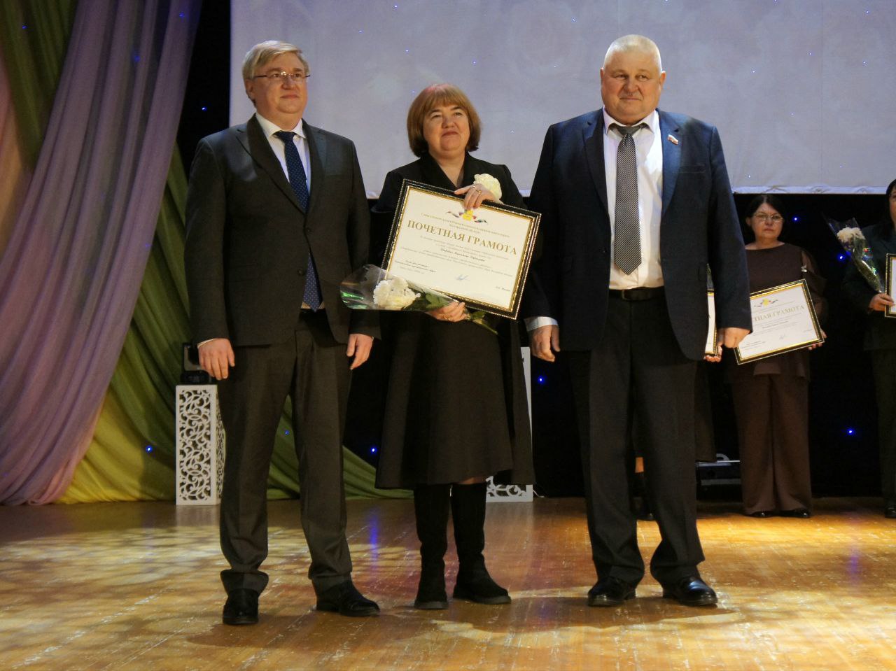 Настоящим подарком для гостей стал яркий праздничный концерт, подготовленный артистами нашего округа. Со сцены звучали песни, наполненные любовью и благодарностью, а в зале царила атмосфера тепла, улыбок и искренних эмоций.