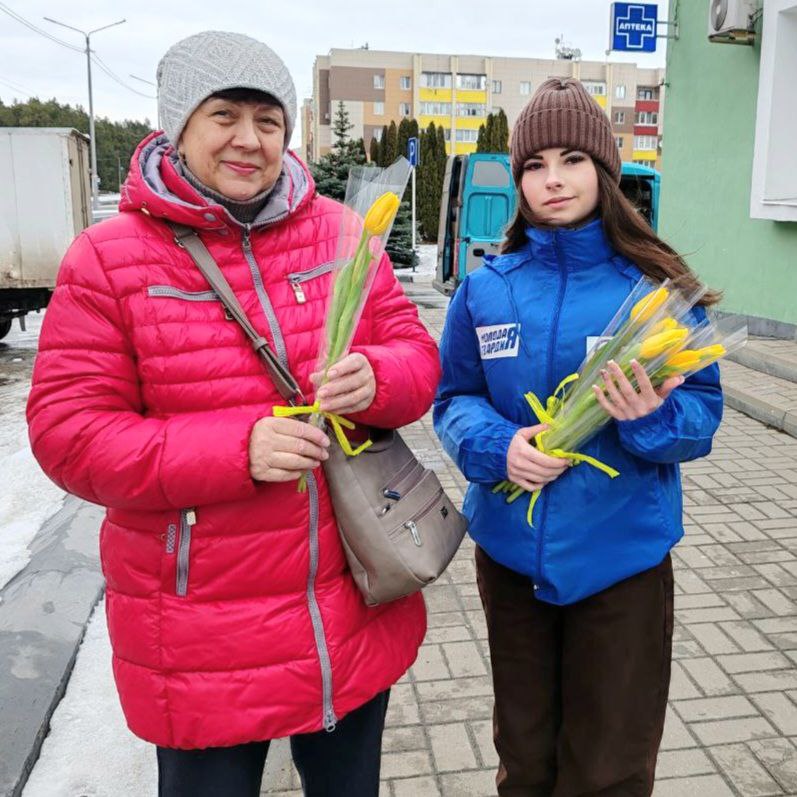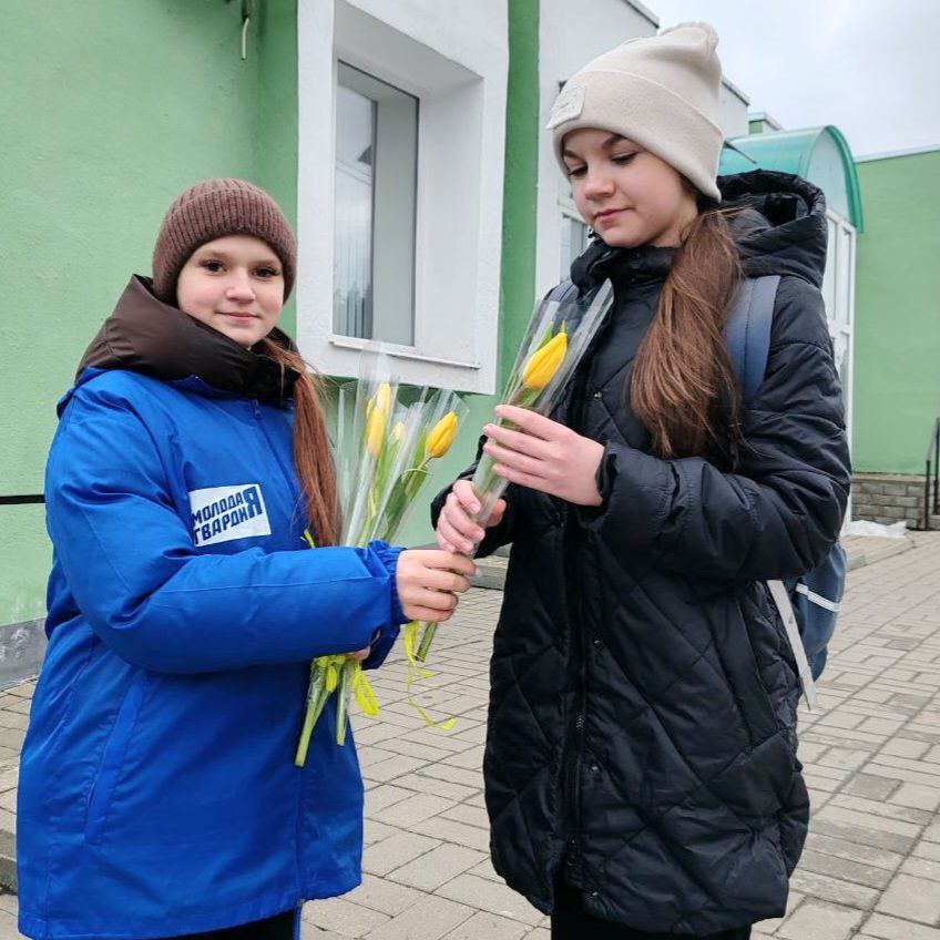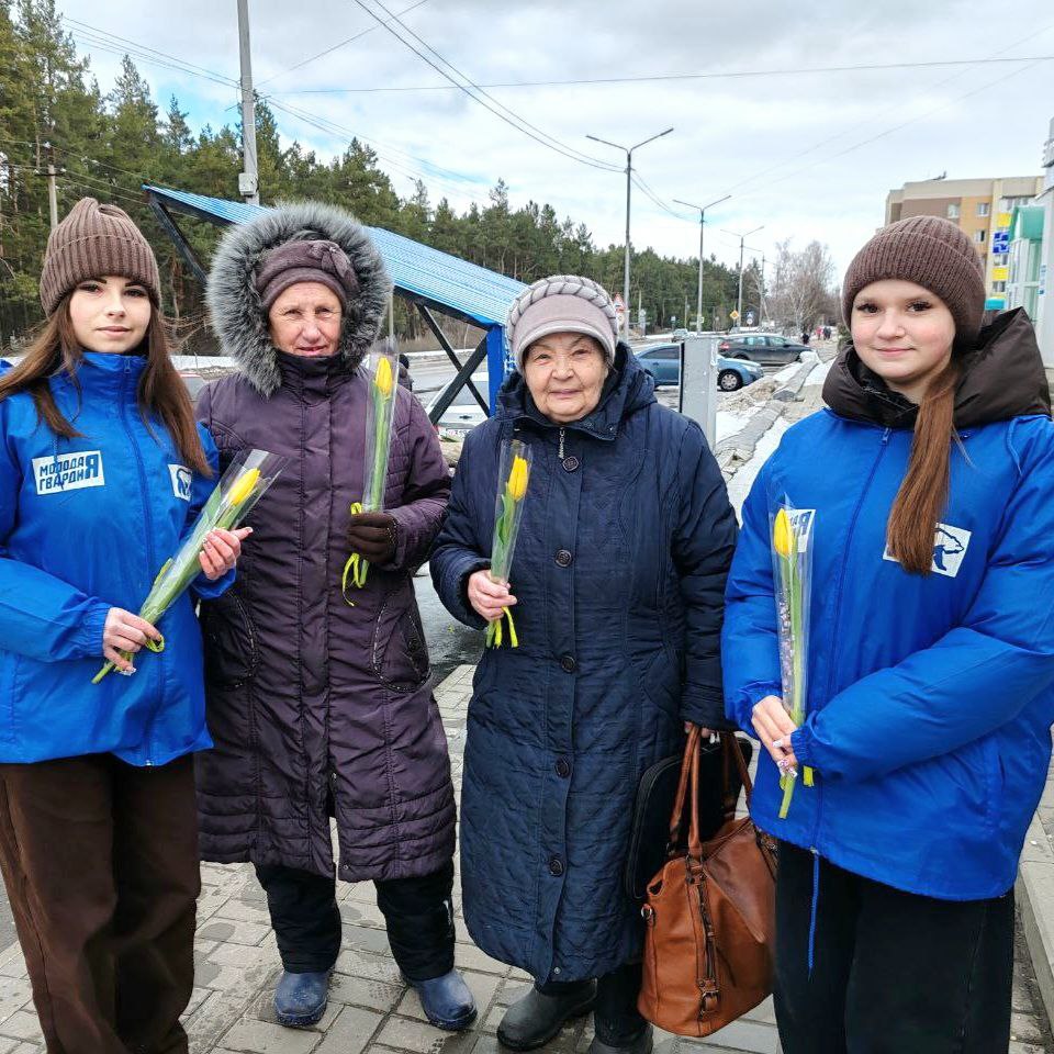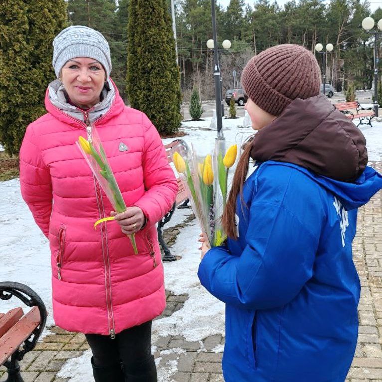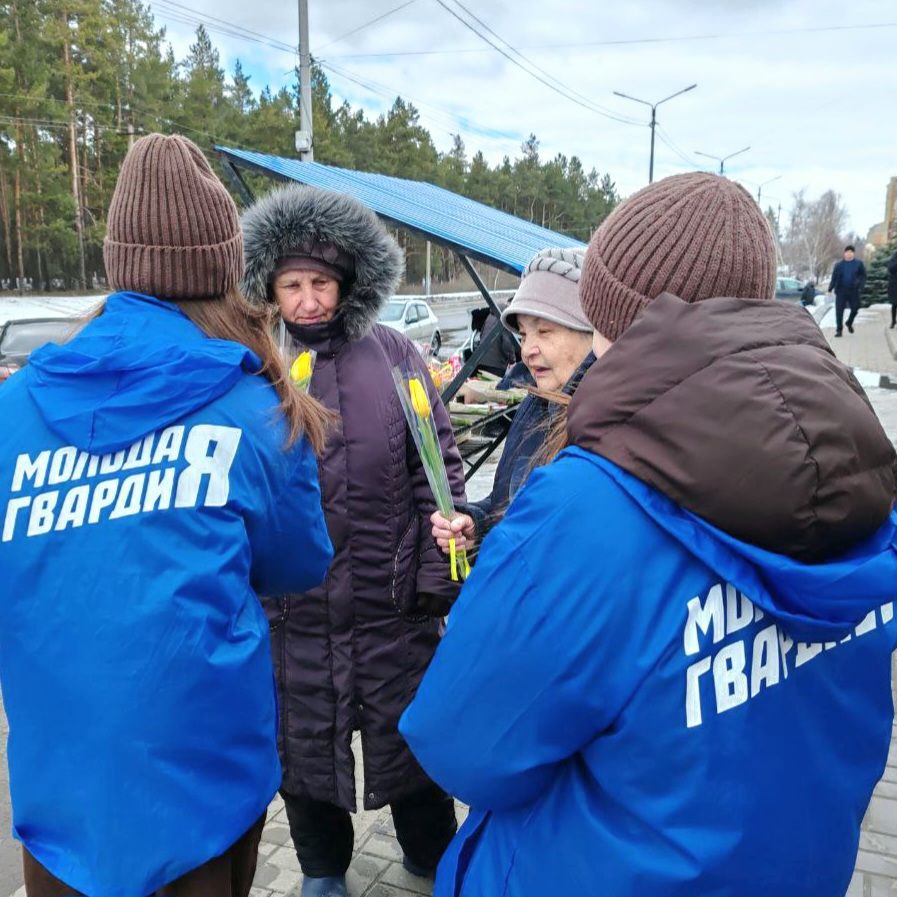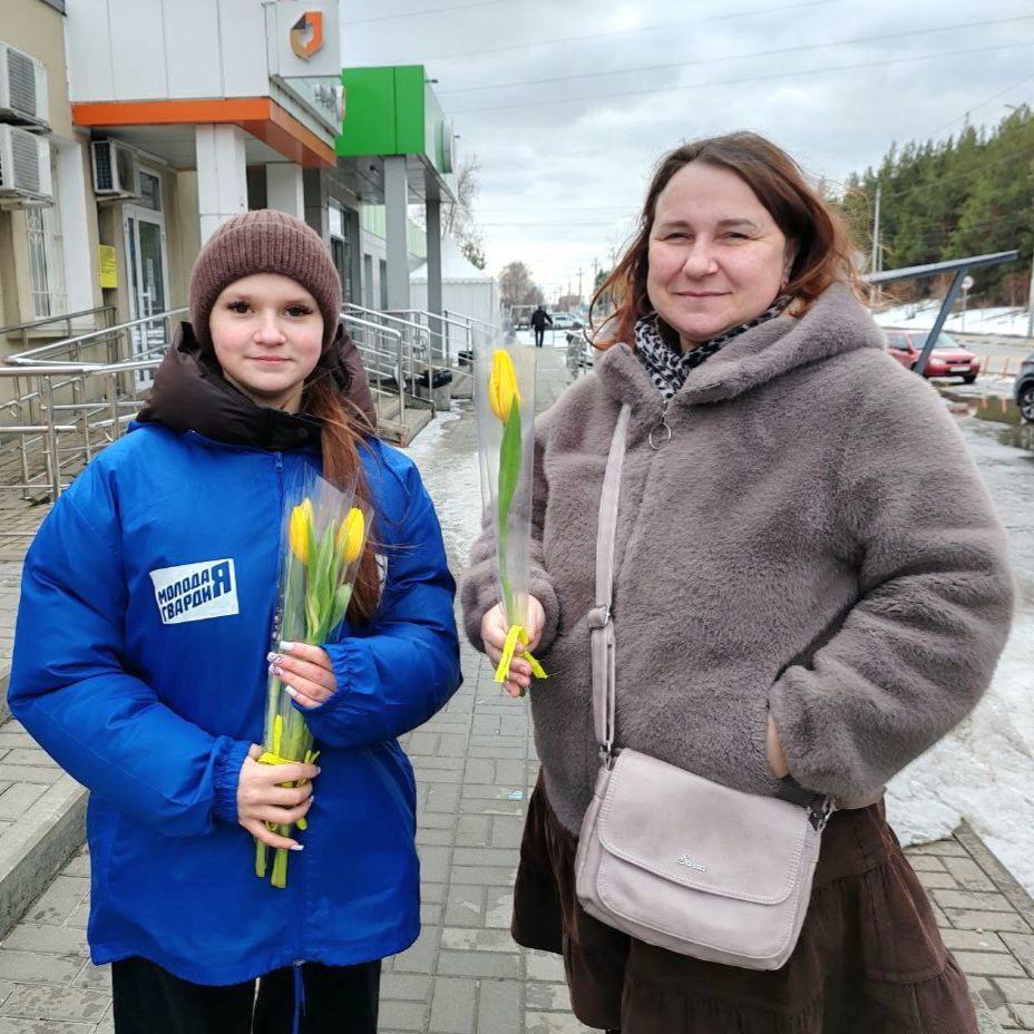 Активисты «Молодой Гвардии» провели праздничную акцию «Вам, любимые!» и поздравили прекрасных дам с наступающим 8 Марта