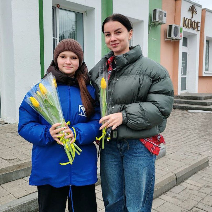 Стало доброй традицией — дарить весеннее настроение просто так! Ребята вручали прохожим женщинам нежные цветы.