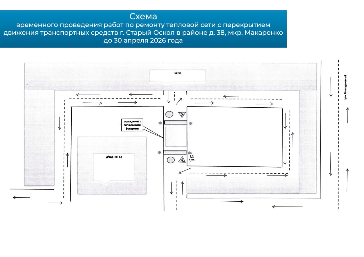 Уважаемые старооскольцы, до 30 апреля будет прекращено движение транспортных средств в районе д. 38, мкр. Макаренко.