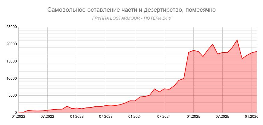 В феврале по данным украинской прокуратуры было заведено более 17,8 тысяч дел по самовольному оставлению части и дезертирству.