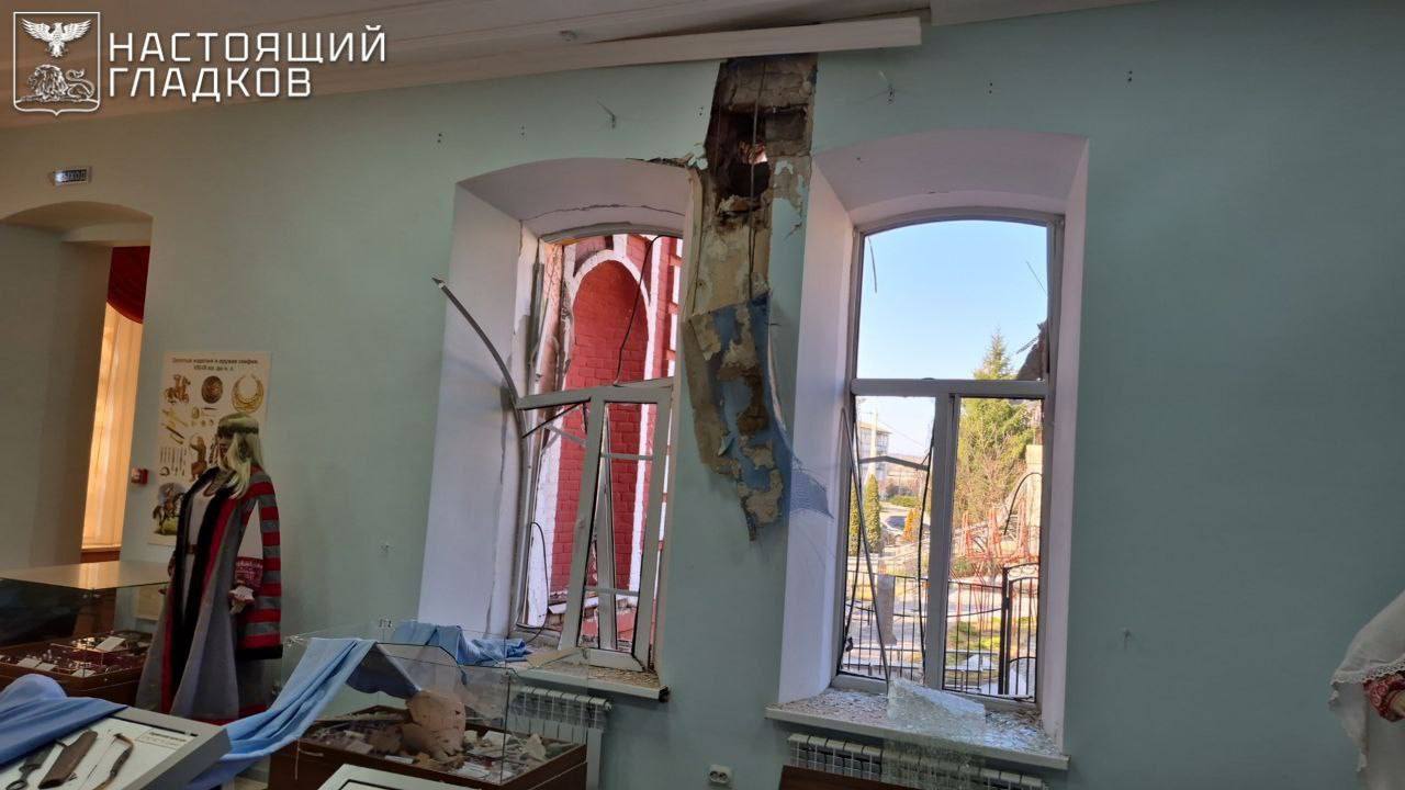 В городе Грайворон вражеский дрон нанёс удар по историко-краеведческому музею — повреждены остекление, стены, внутренняя отделка.