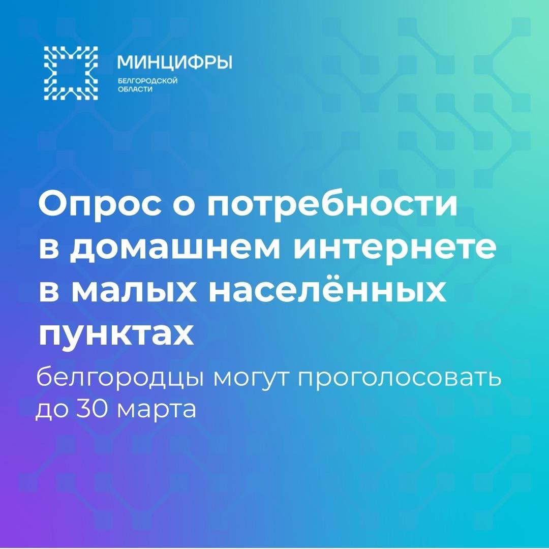 Минцифры РФ проводит опрос среди жителей деревень и сёл, где уже создана базовая инфраструктура связи, но домашний интернет пока недоступен. Это нужно, чтобы оценить реальный спрос и подготовить решения для подключения отдельных домохозяйств. Опрос продлится до 30 марта по ссылке: https://clck.ru/3QtscZ