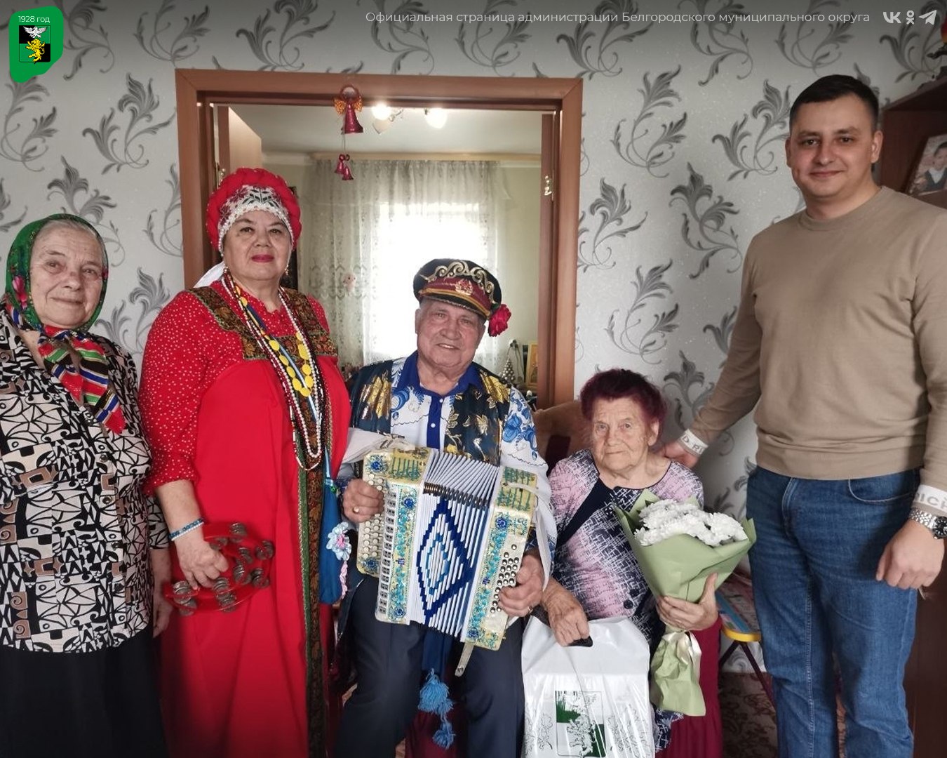 Жительницу Стрелецкого пришли поздравить руководитель управления Стрелецкой территории, староста села и талантливая солистка ансамбля «Стрелецкое раздолье».