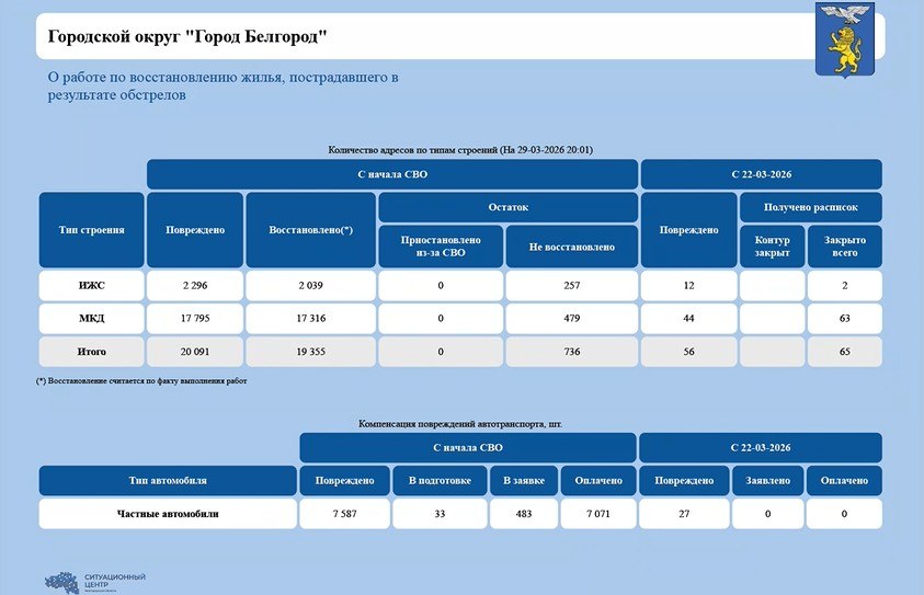 За неделю в Белгороде восстановили 65 жилых помещений