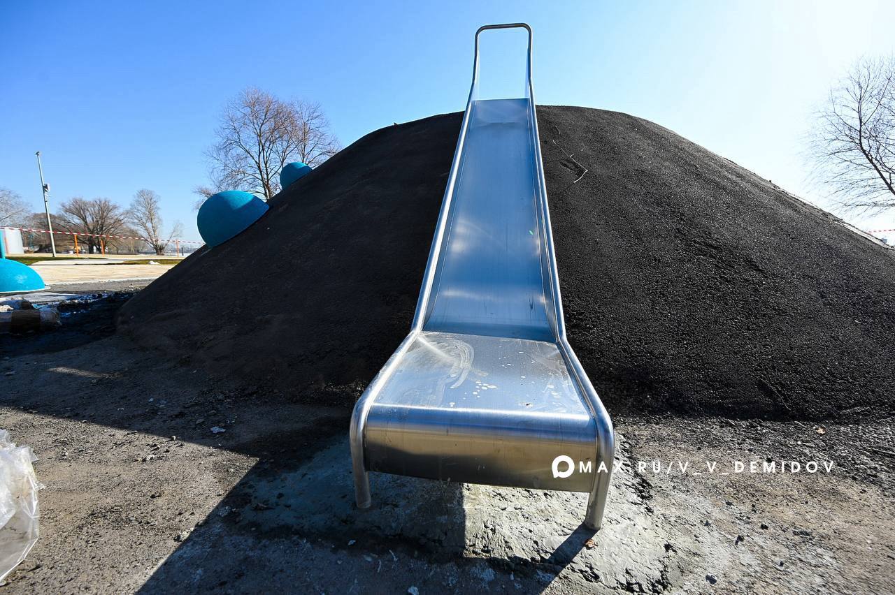 Друзья, идет активная подготовка к открытию второй очереди пляжа в парке «Берега». Хочу рассказать вам о рельефной игровой площадке, которая появится здесь