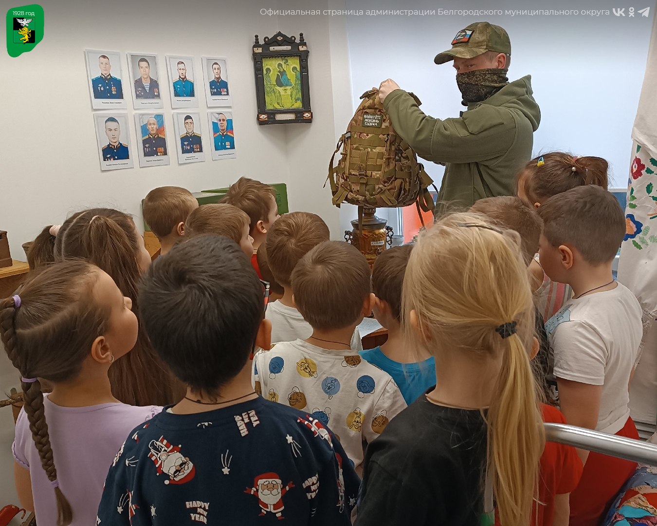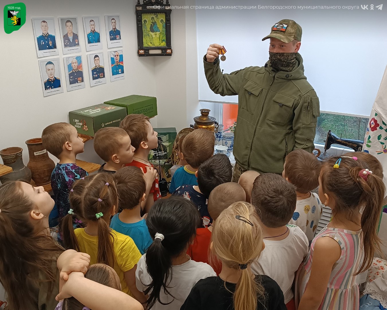 В завершение встречи участник специальной военной операции передал в музей детского сада памятные экспонаты — солдатский ремень и бронежилет, а также рассказал о медалях и наградах, полученных за проявленное мужество.