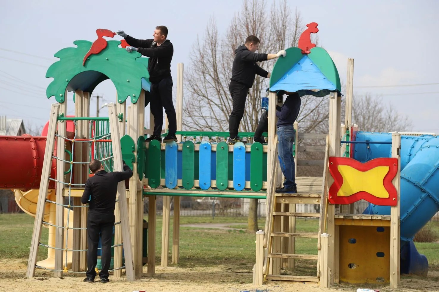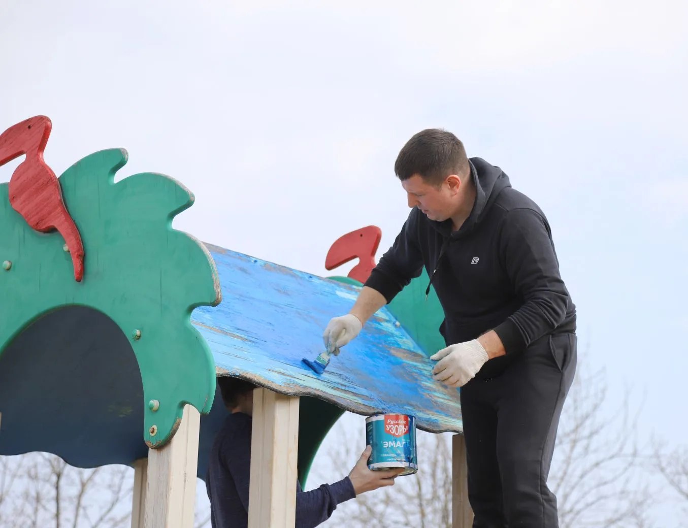 Вместе они очистили всю территорию парка от прошлогодней листвы и бытового мусора, привели в порядок детскую площадку — покрасили игровой городок, чтобы он снова стал ярким и безопасным для наших ребят