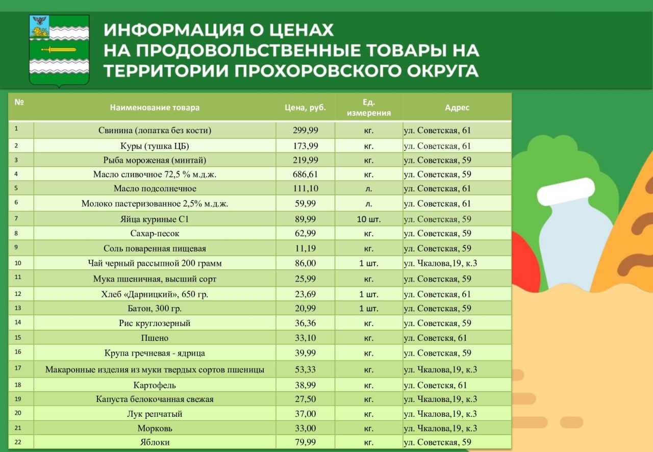 Представляю вам актуальную информацию о наиболее выгодных предложениях на самые востребованные товары потребительской корзины на территории Прохоровского муниципального округа.