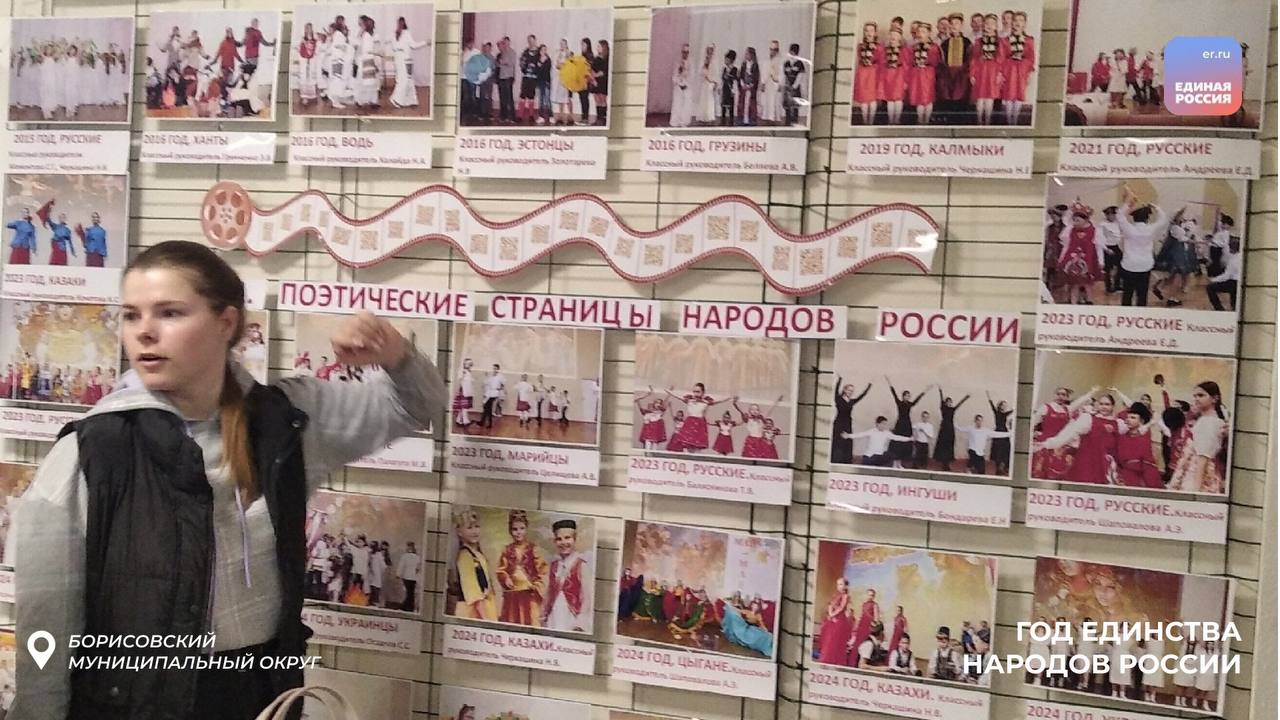 В Борисовском округе юные художники из Новоборисовской средней школы провели выставку рисунков под названием «Наша Родина — Россия!». Каждое из представленных произведений отражало культурное многообразие и богатую историю нашего народа. Также учащиеся из Средней школы №2 подготовили фотовыставку «Взгляд сквозь время». На ней были представлены снимки традиционных праздников народов России, что позволило зрителям лучше понять культурные особенности и традиции различных наций страны.