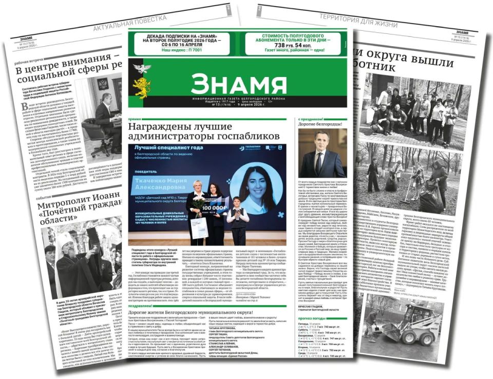 Белгородский муниципальный округ информирует читателей, что в номере газеты «Знамя» от 9 апреля 2026 года публикуются важные новости округа, а также официальные объявления и проекты