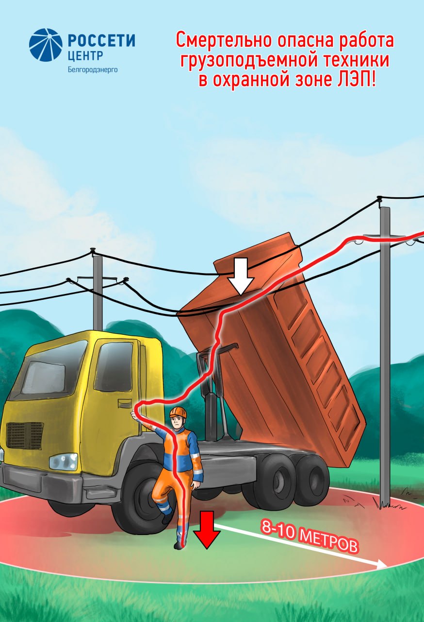 Филиал «Россети Центр» – «Белгородэнерго» призывает водителей к внимательности и осторожности при проведении работ вблизи линий электропередачи.
