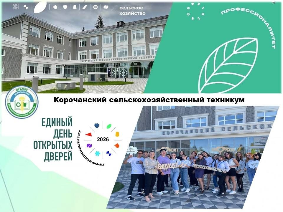 18 апреля с 10:00ч. в Корочанском сельскохозяйственном техникуме пройдёт Единый день открытых дверей.