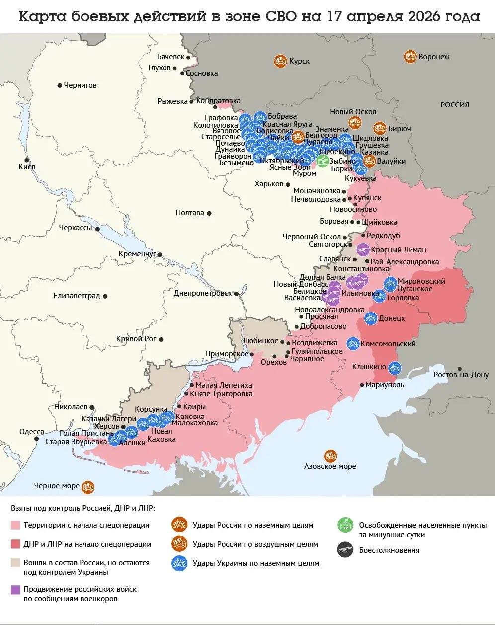 Карта боевых действий в зоне СВО на 17 апреля 2026 года