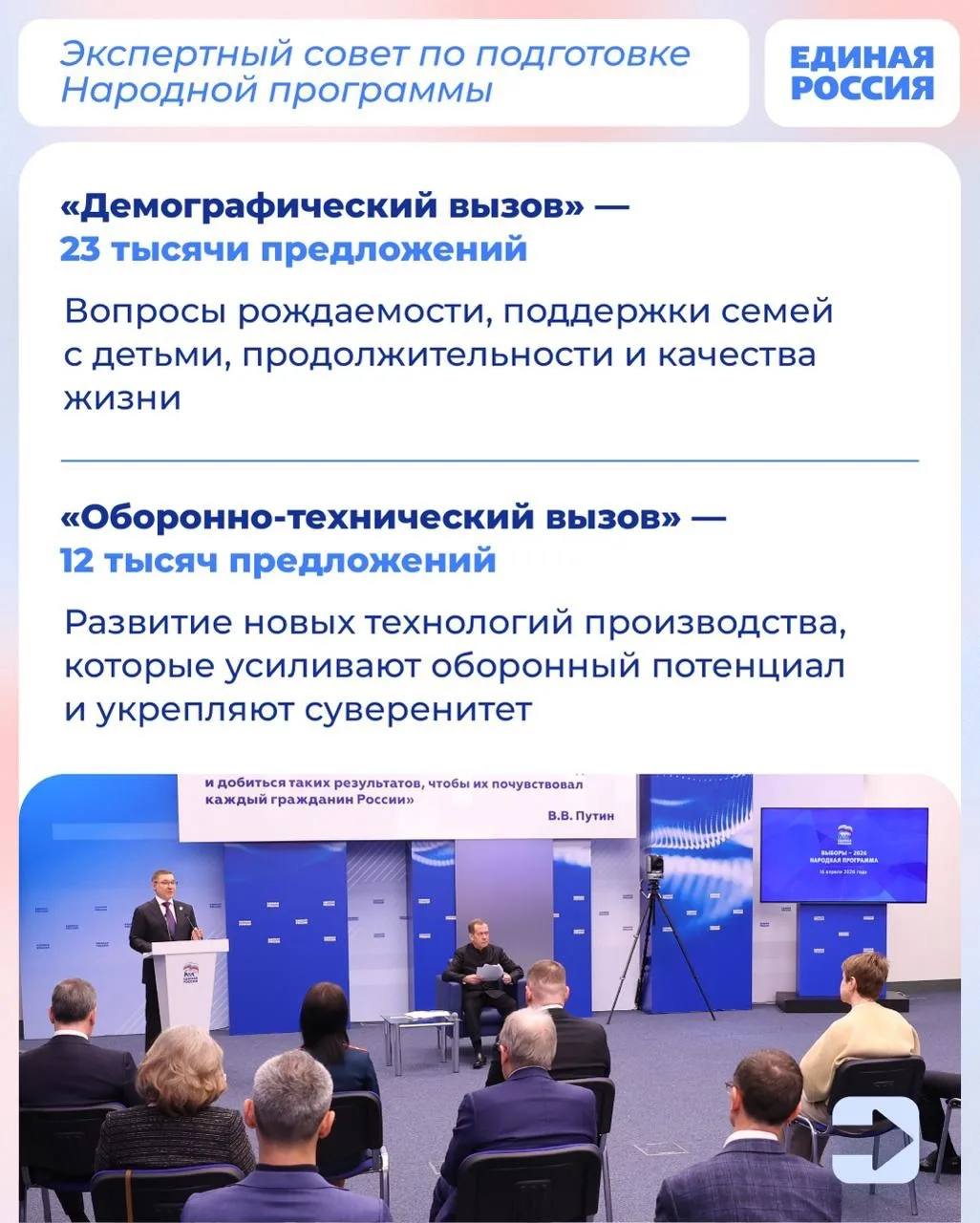 Как идут сбор и проработка предложений в новый партийный документ? Об этом говорили на встрече Председателя Единой России Дмитрия Медведева с экспертной группой по подготовке Народной программы партии.