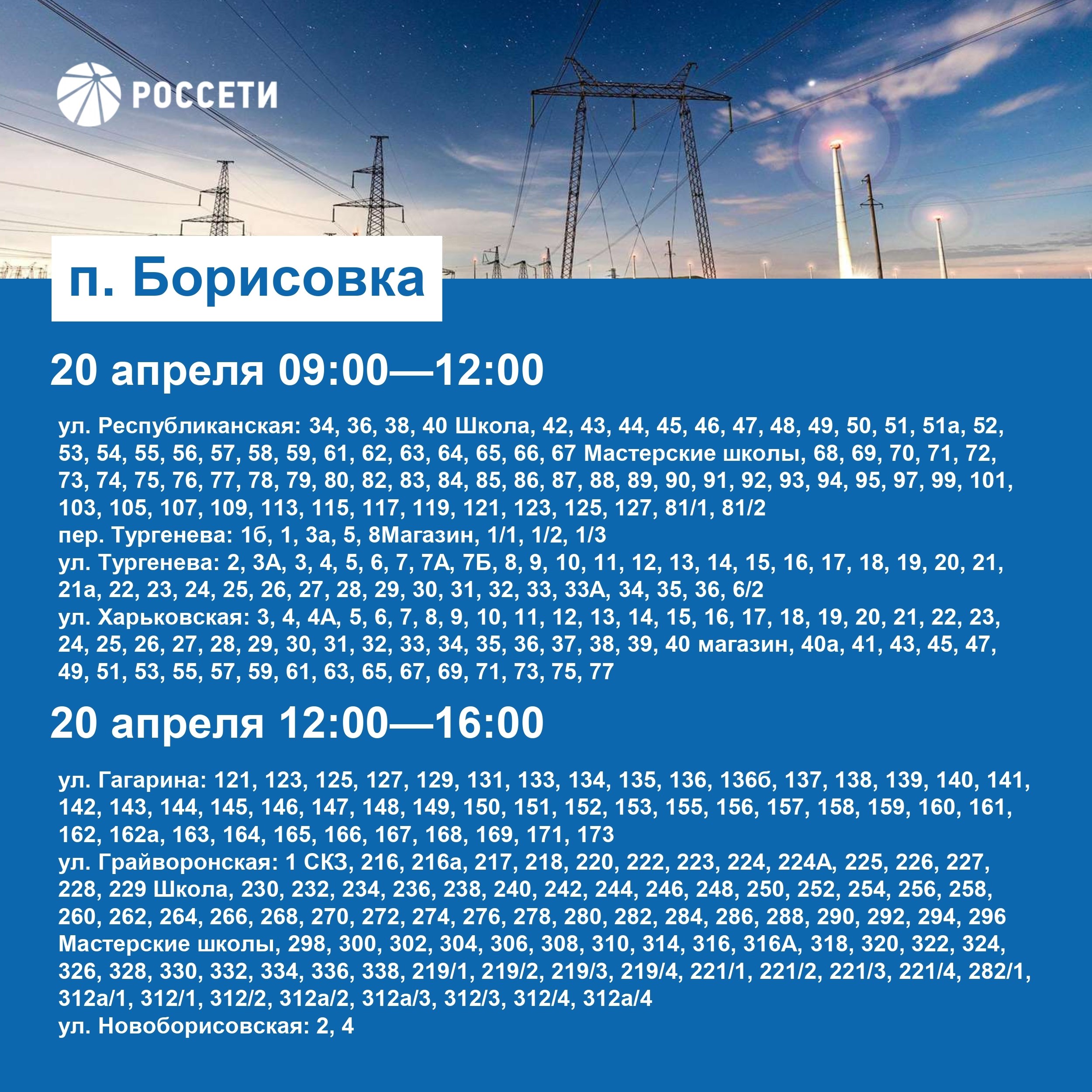 Уважаемые жители Борисовского муниципального округа, информируем вас о плановых отключениях электроэнергии