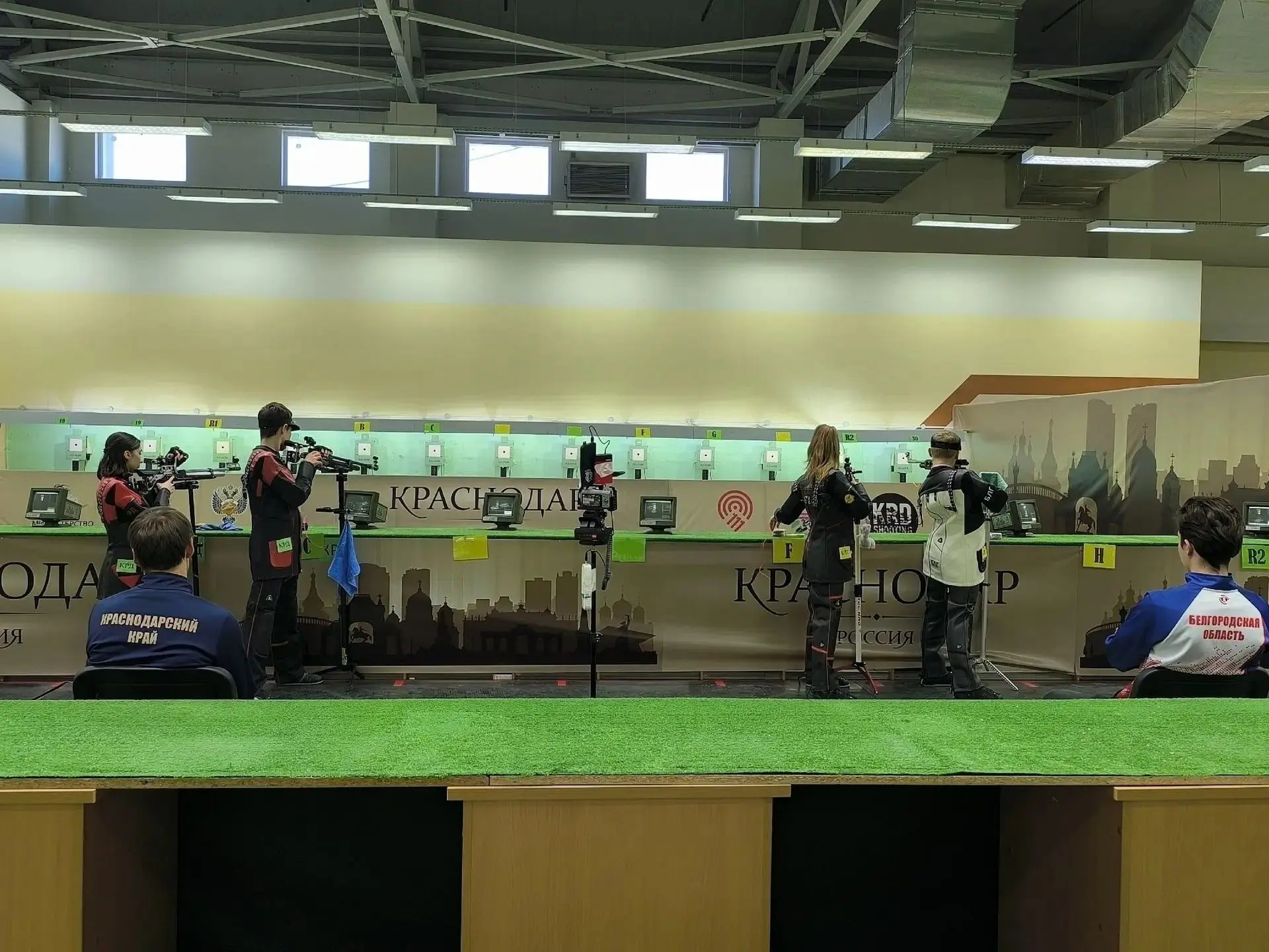 Тренируют стрелков Ольга Лутай, Сергей Князев, Сергей Бурлаков, Евгения Постовалова.
