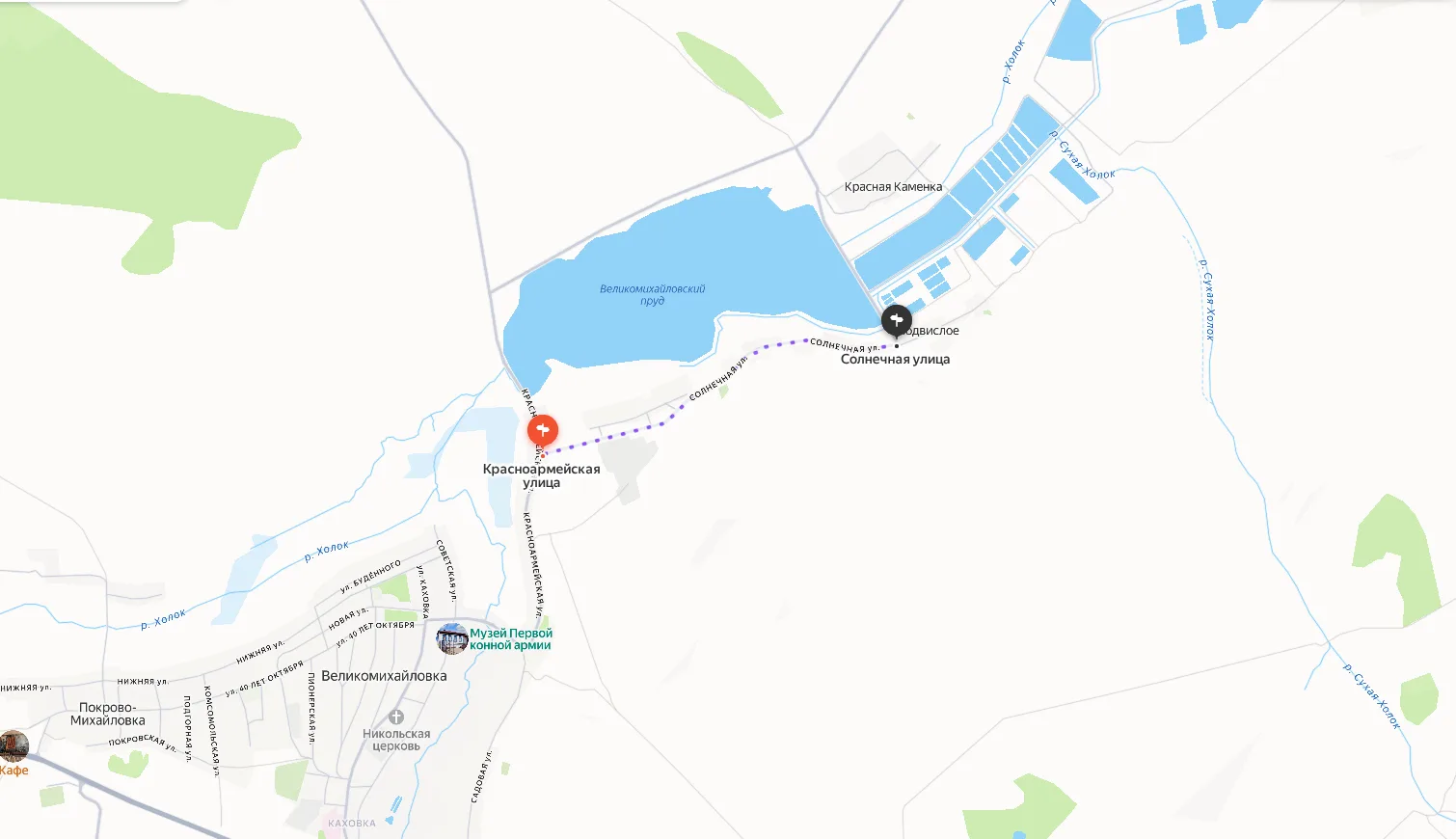 Участок начинается в селе Великомихайловка возле остановки общественного транспорта «Поворот на Подвислое», а заканчивается в селе Подвислое на улице Солнечная возле поворота на хутор Красная Каменка.