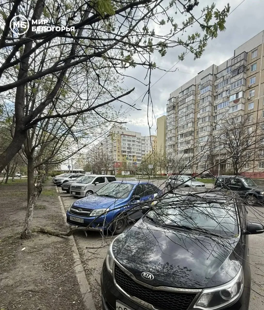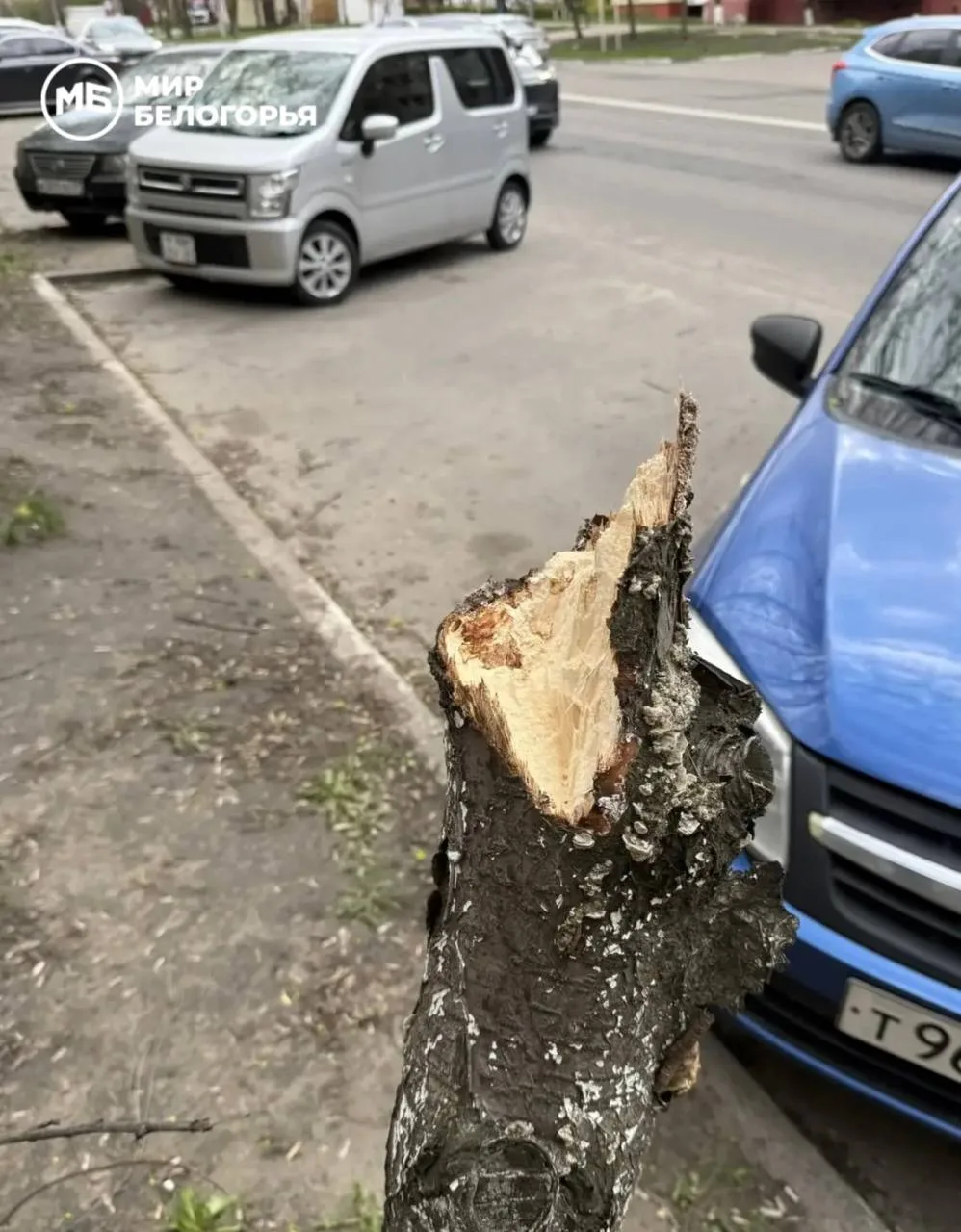 В Белгороде изза сильного ветра ветви деревьев падают на припаркованные машины