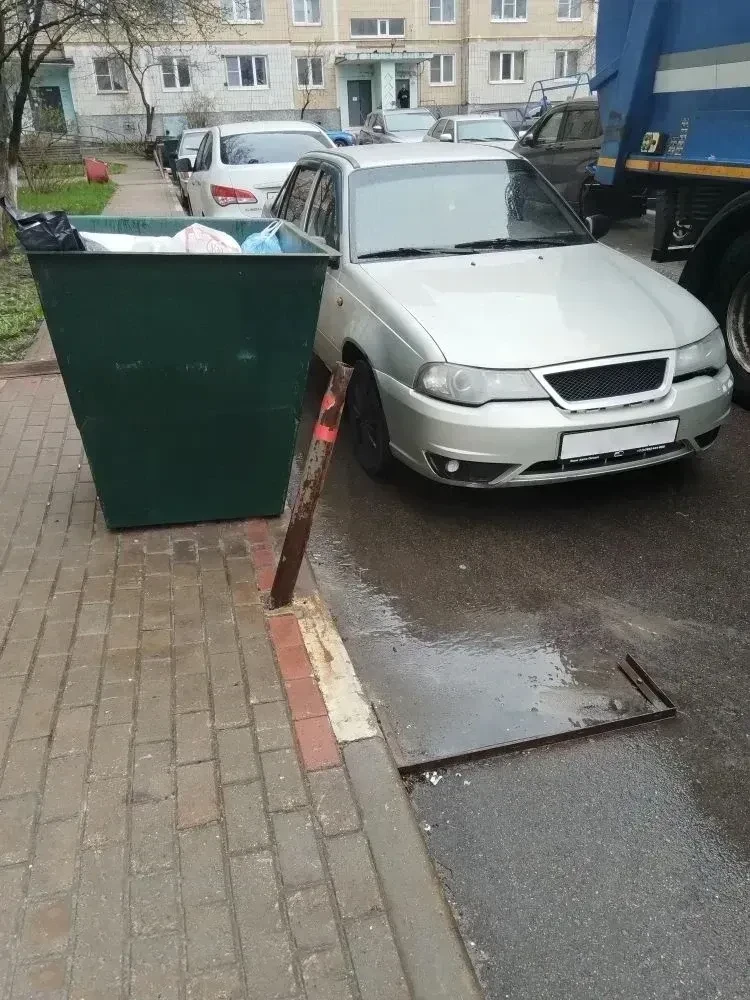 Машины, оставленные слишком близко к контейнерам, мешают работе спецтехники. В результате мусор остаётся на месте и постепенно накапливается.