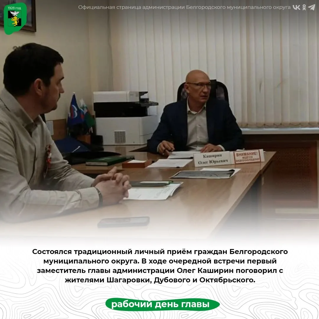 Состоялся традиционный личный приём граждан Белгородского муниципального округа