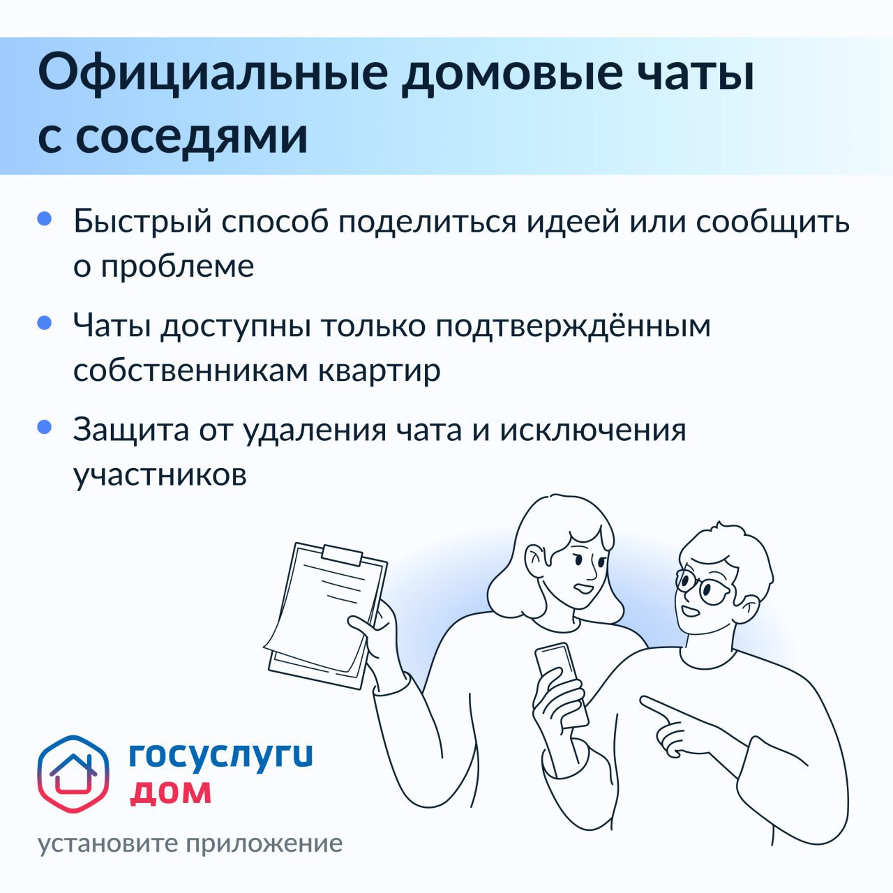 В государственный домовый чат попадут исключительно собственники, которые прошли идентификацию в приложении «Госуслуги.Дом», а переписки с управляющей компанией будут иметь юридическую значимость. Использование отечественного программного обеспечения сделает безопаснее передачу персональных данных. В перспективе к общению через официальный домовой чат в будущем могут подключить и застройщиков.