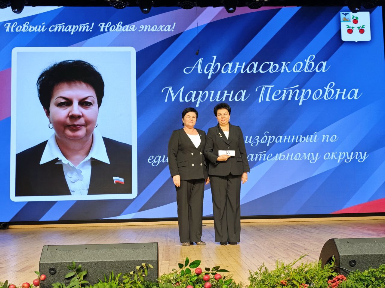 Вместе с депутатом Белгородской областной Думы восьмого созыва Игорем Владимировичем Закотенко и председателем территориальной избирательной комиссии Ириной Ивановной Масленниковой вручили народным избранникам удостоверения, значки и памятные подарки, после чего депутаты официально вступили в исполнение своих полномочий.