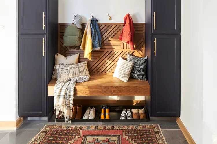 Первое, что нужно сделать, — это определить, как будет выглядеть входная зона. В связи с началом учебного года в дом возвращаются рюкзаки, спортивные сумки и другие необходимые принадлежности. Следует заранее выделить места для каждого члена семьи — как для детей, так и для родителей. Удобное размещение вещей обеспечит порядок и быстрый доступ к ним без лишних хлопот.