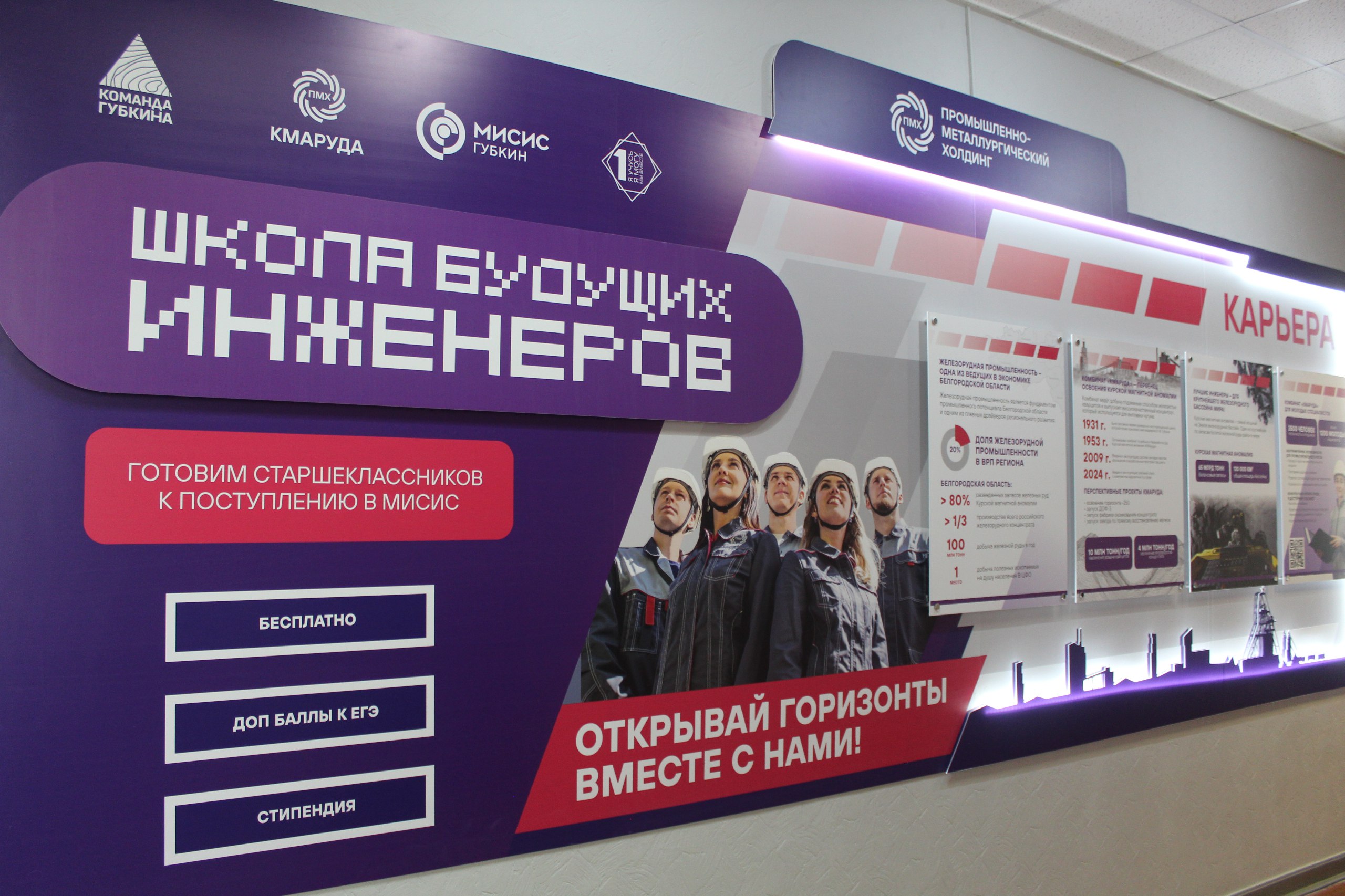 Данный проект – результат плодотворного сотрудничества администрации, школы № 1, Губкинского филиала НИТУ «МИСИС» и АО «Комбинат КМАруда». Первые 25 учеников 10-х классов из семи школ округа уже приступили к занятиям. Их ждёт серьёзная, но очень увлекательная двухгодичная программа. Помимо усиленной подготовки к ЕГЭ по математике, физике, информатике и химии, ребята будут изучать специальные дисциплины: инженерную графику, 3D-моделирование, геологию и горное дело. Самое главное – дети получат чёткую и надёжную перспективу. Выпускники Школы смогут продолжить обучение в НИТУ «МИСИС» по целевым договорам, пройти производственную практику на комбинате КМАруда и получить гарантированное трудоустройство по востребованной инженерной специальности, а значит не уезжая из родного города построить успешную карьеру.