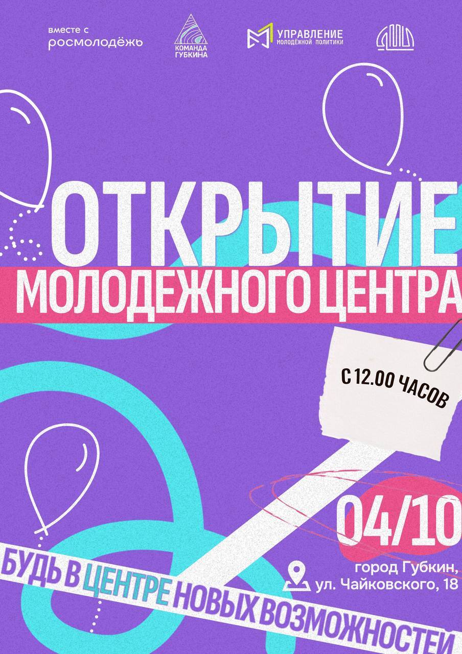 Будьте в числе первых! Приходите вместе с друзьями, чтобы вместе открыть новую страницу в истории губкинской молодёжи!