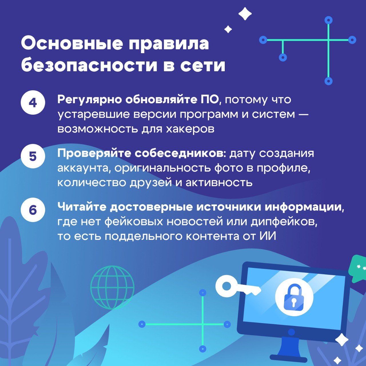 Напоминаем в карточках правила по осознанному поведению в Интернете.