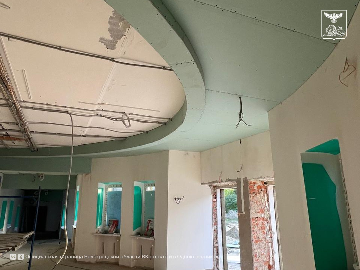 Сейчас рабочие утепляют и ведут отделку фасада. Внутри здания они окрашивают стены, укладывают керамогранит на пол, ведут обшивку потолков гипсокартонными листами, устройство слаботочных сетей.