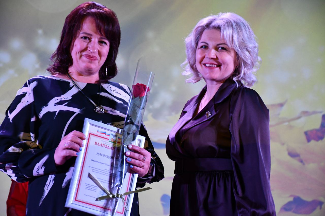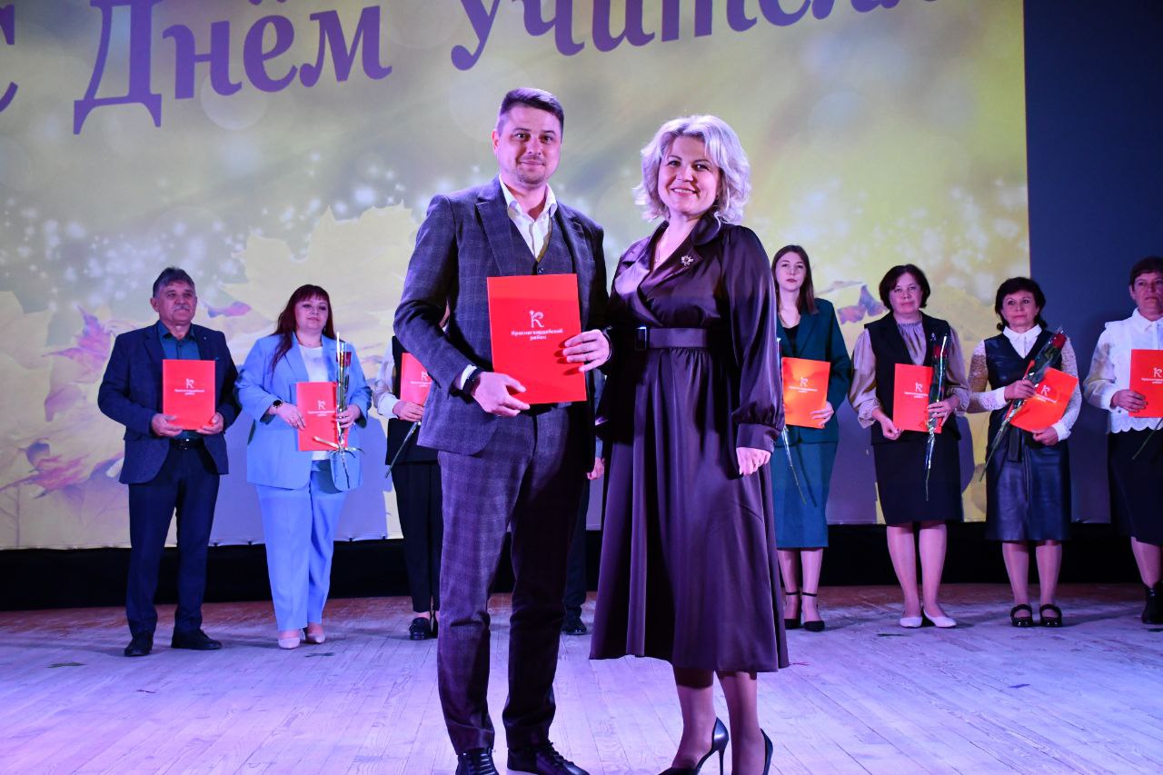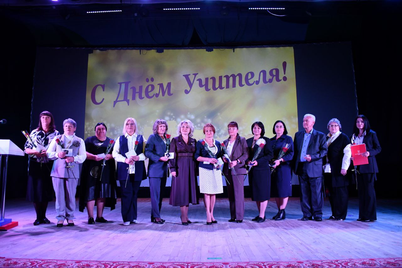 Со сцены ЦКР "Юбилейный" звучали поздравления и тёплые слова, адресованные работникам и ветеранам сферы образования. Виновники торжества были удостоены наград разного уровня.